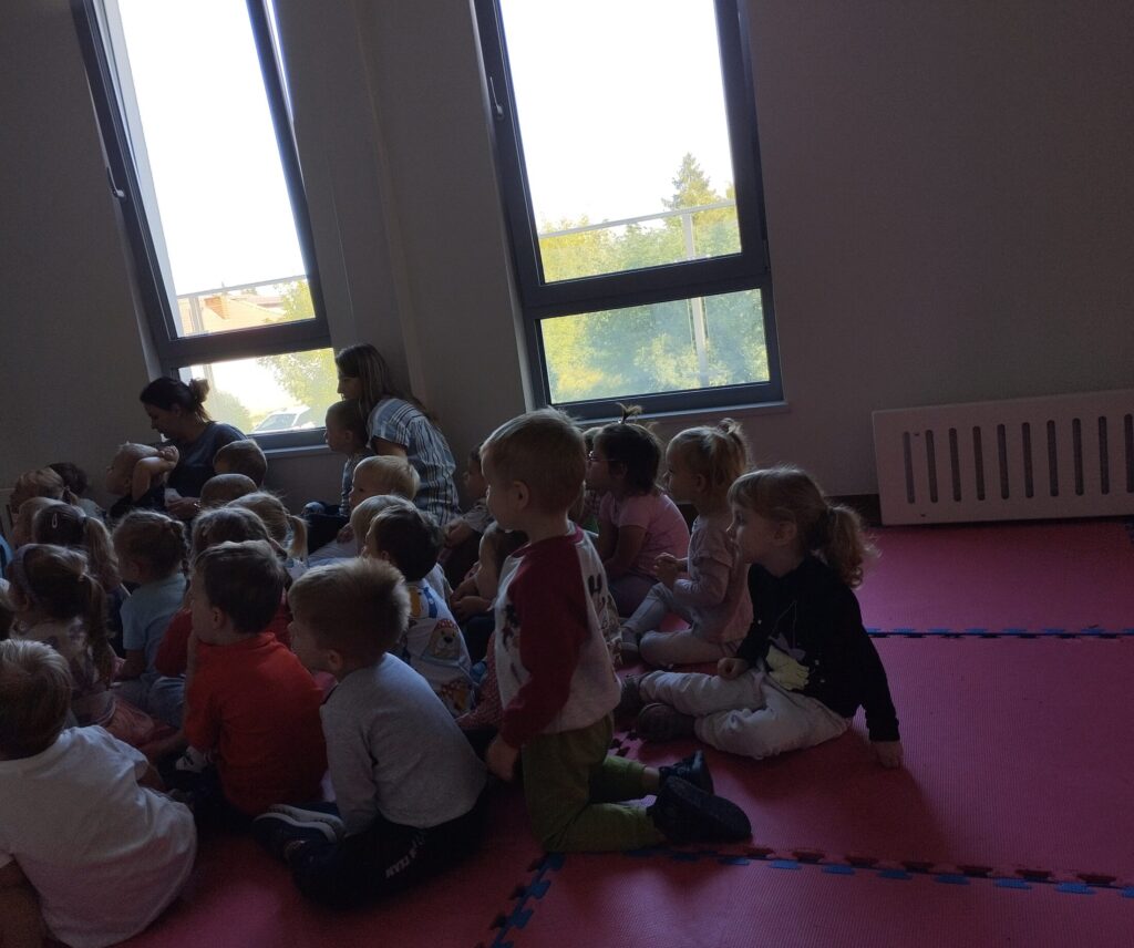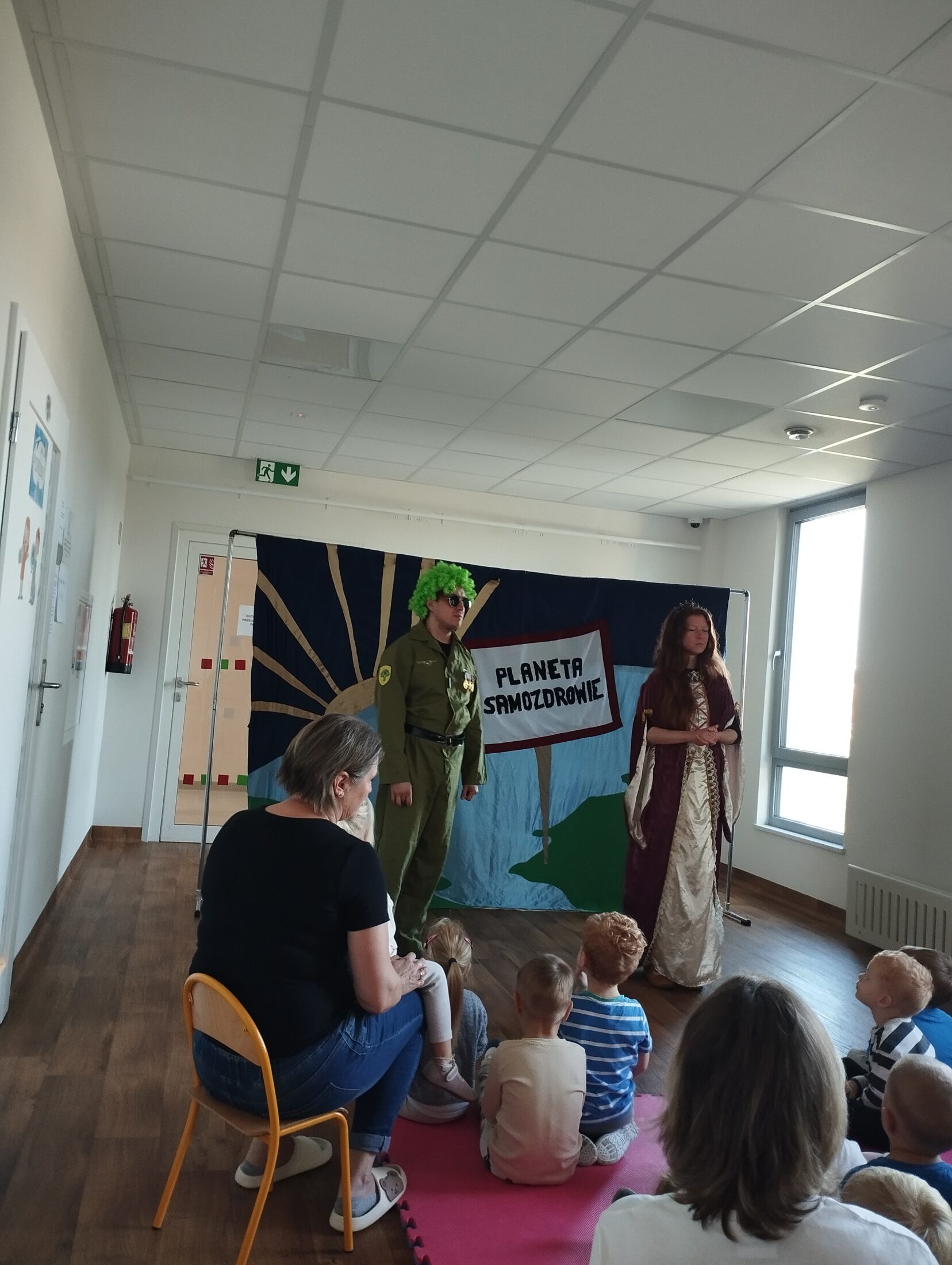 Galeria zdjęć przedstawia dzieci uczestniczące w tym teatrzyku. Dzieci dowiedziały się jak prawidłowo się odżywiać i czego nie jeść w nadmiarze.