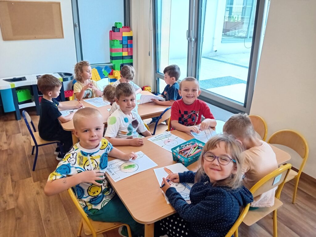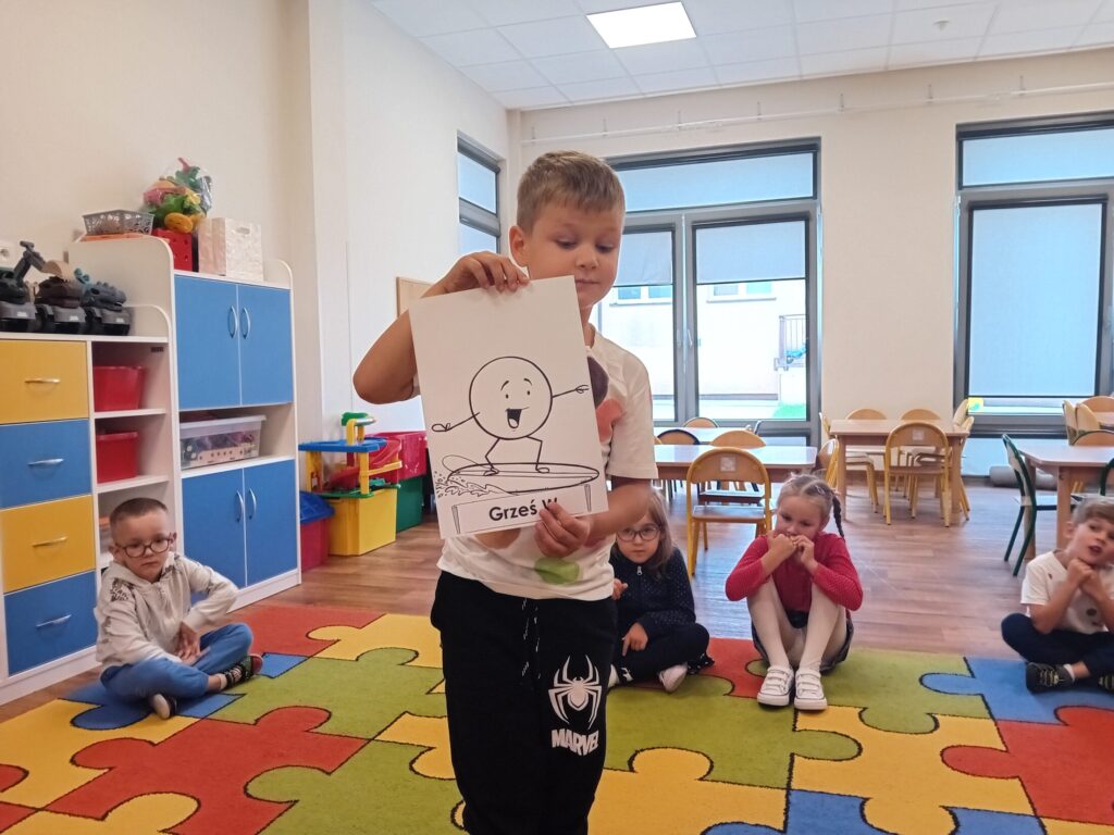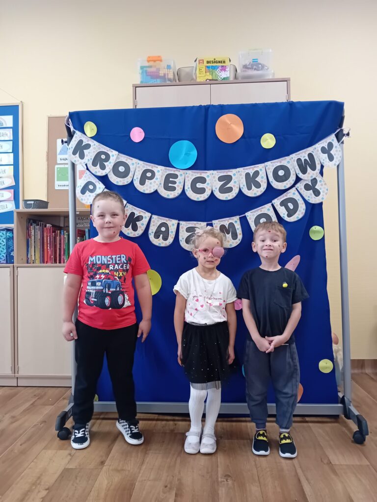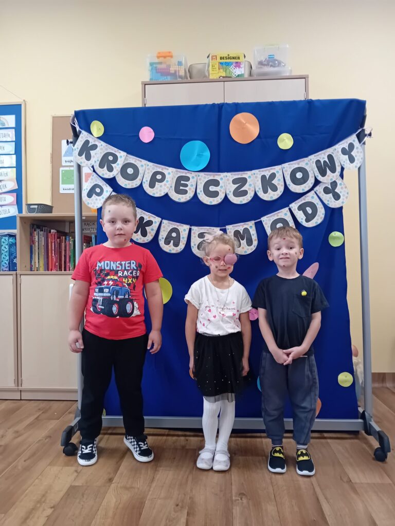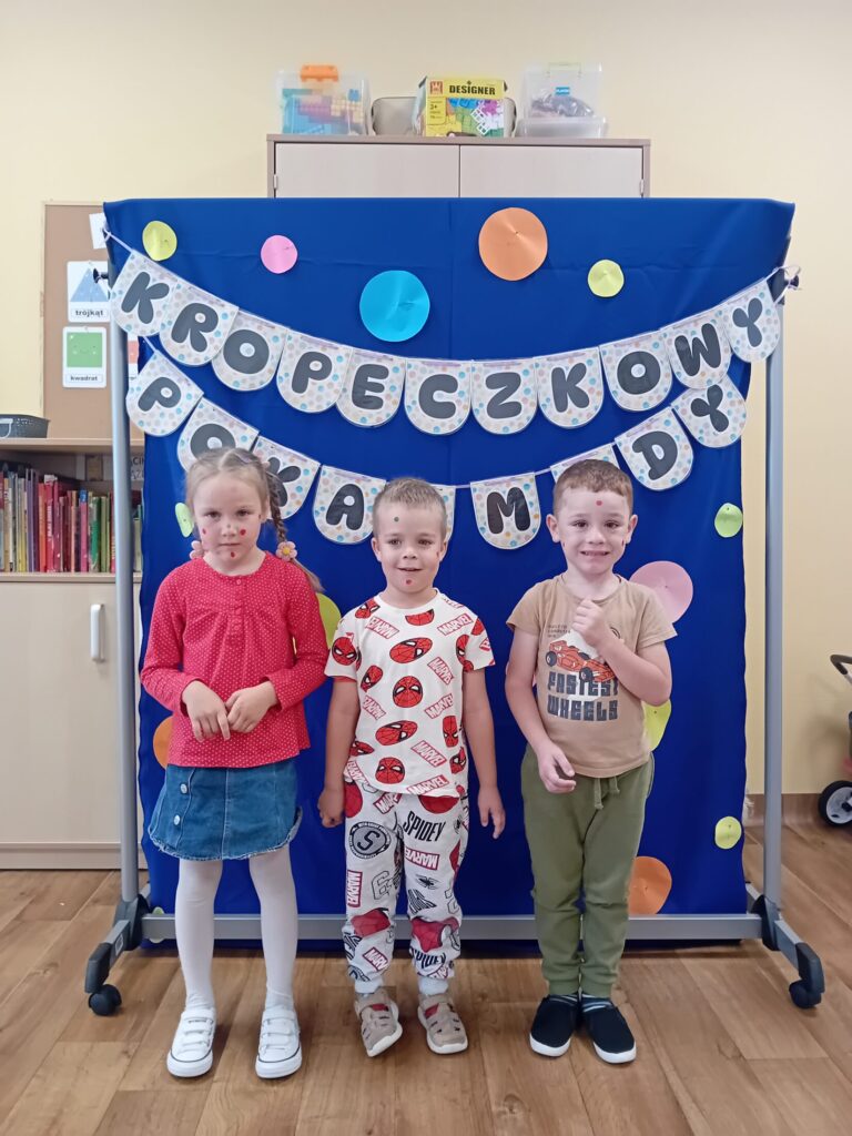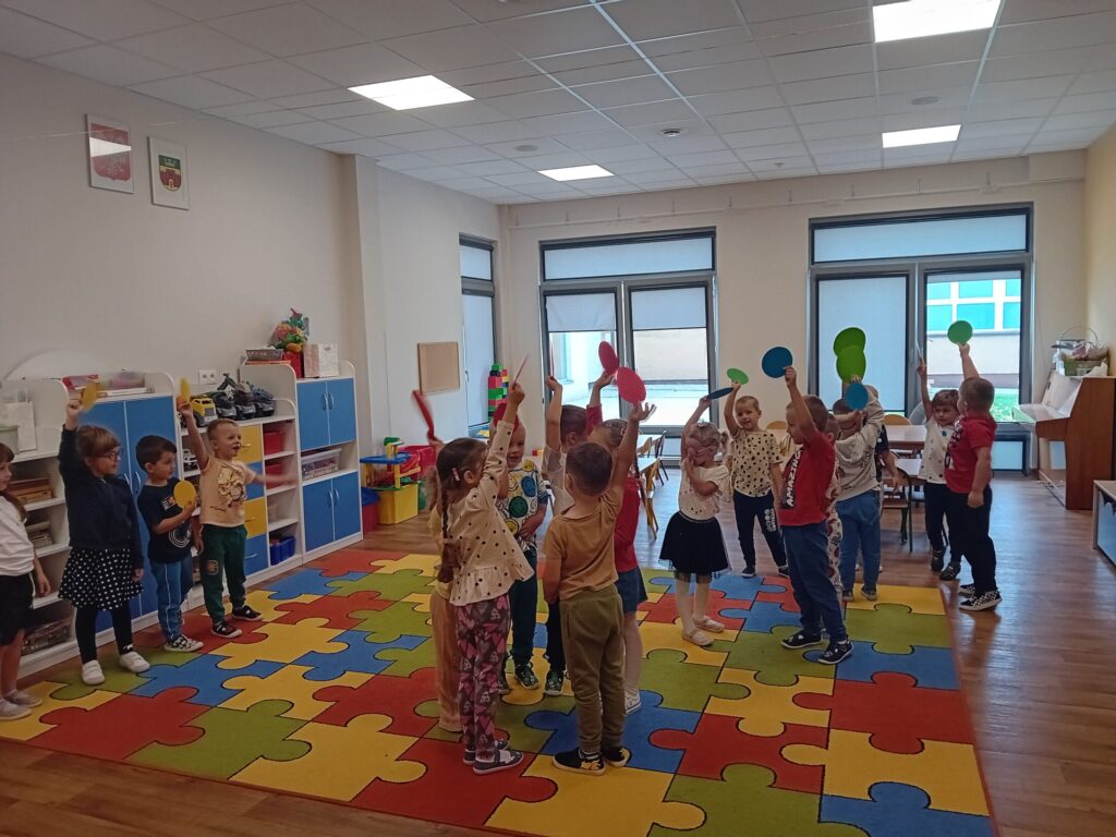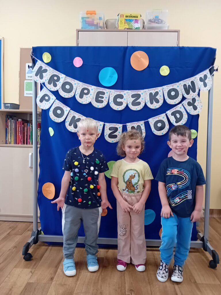 Galeria zdjęć przedstawia dzieci biorące udział w dniu kropki. Dzieci tańczyły do muzyki, segregowały je wg kolorów oraz wykonały pracę plastyczną, pt. „Osobista kropeczka”