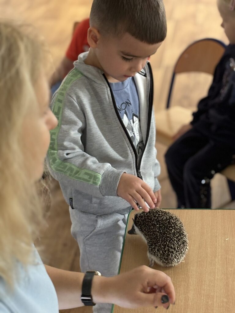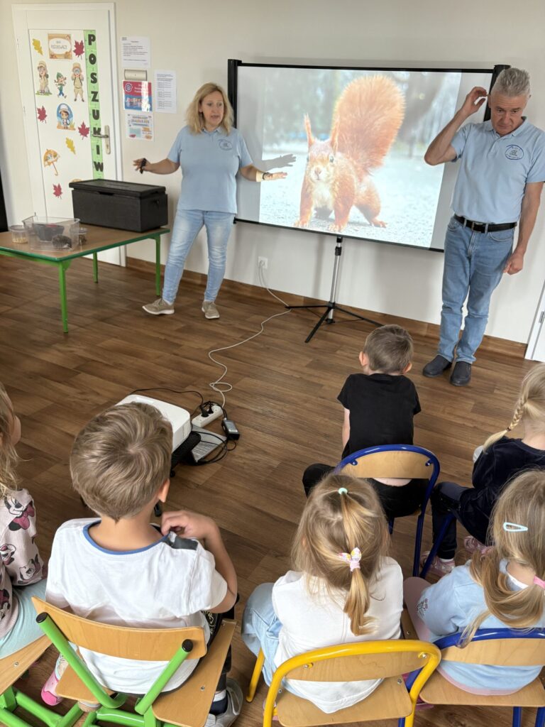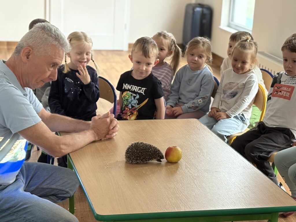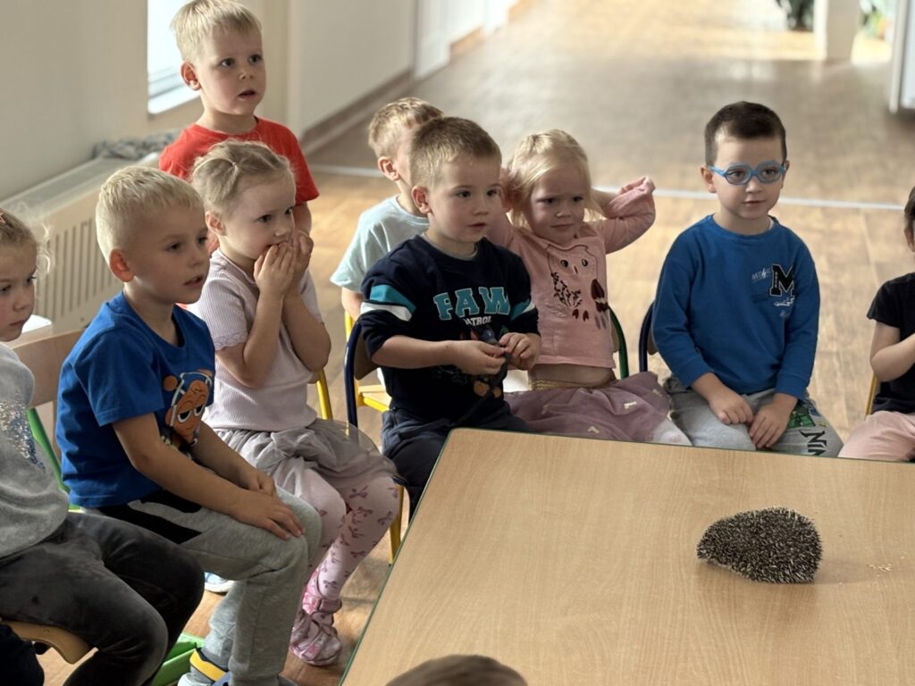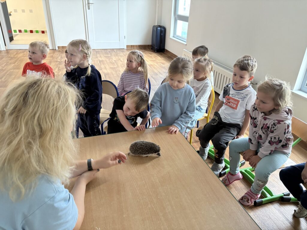 Dzieci wzięły udział w warsztatach „Kto śpi zimą, a kto nie” prowadzonych przez „Wesoły Uniwersytet”. Dowiedziały się jak do zimy przygotowują się jeż, wiewiórka, niedźwiedź i świstak, a także miały okazję pogłaskać jeża.