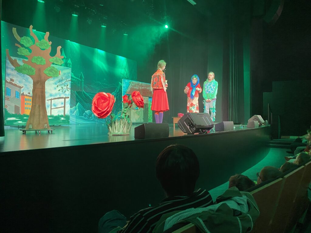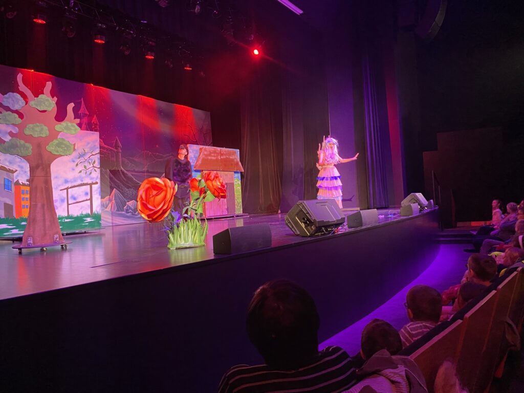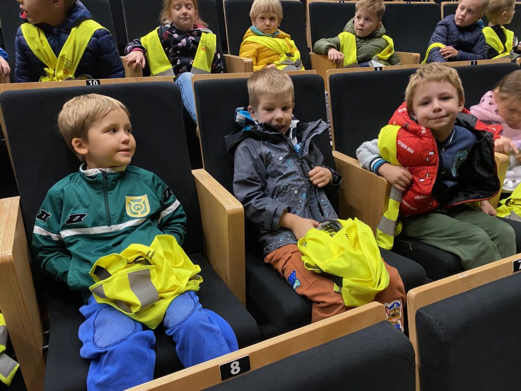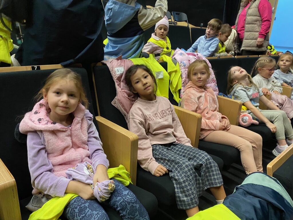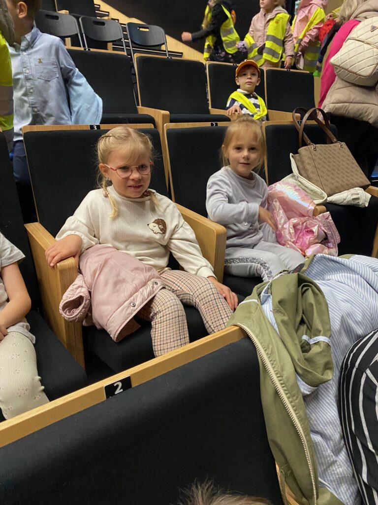 ,,Królowa Śniegu” – spektakl w MCER. 5 października 2025 przez przedszkole Galeria zdjęć przedstawia dzieci podczas oglądania spektaklu.