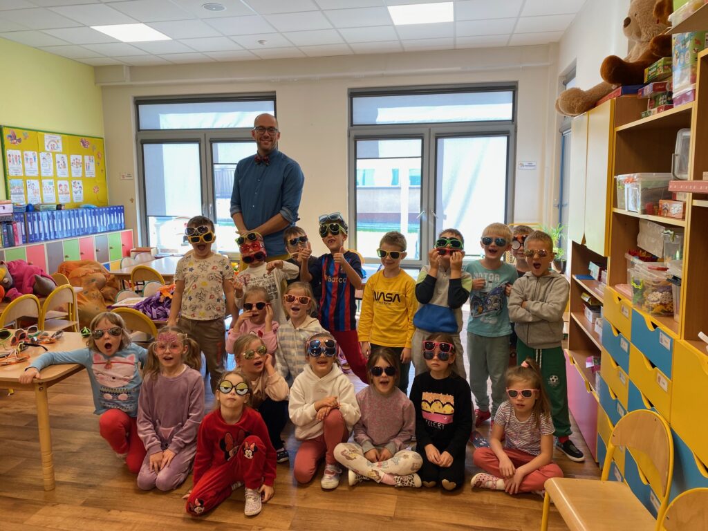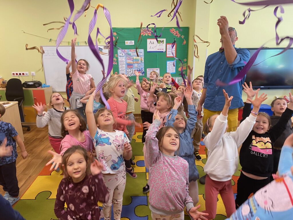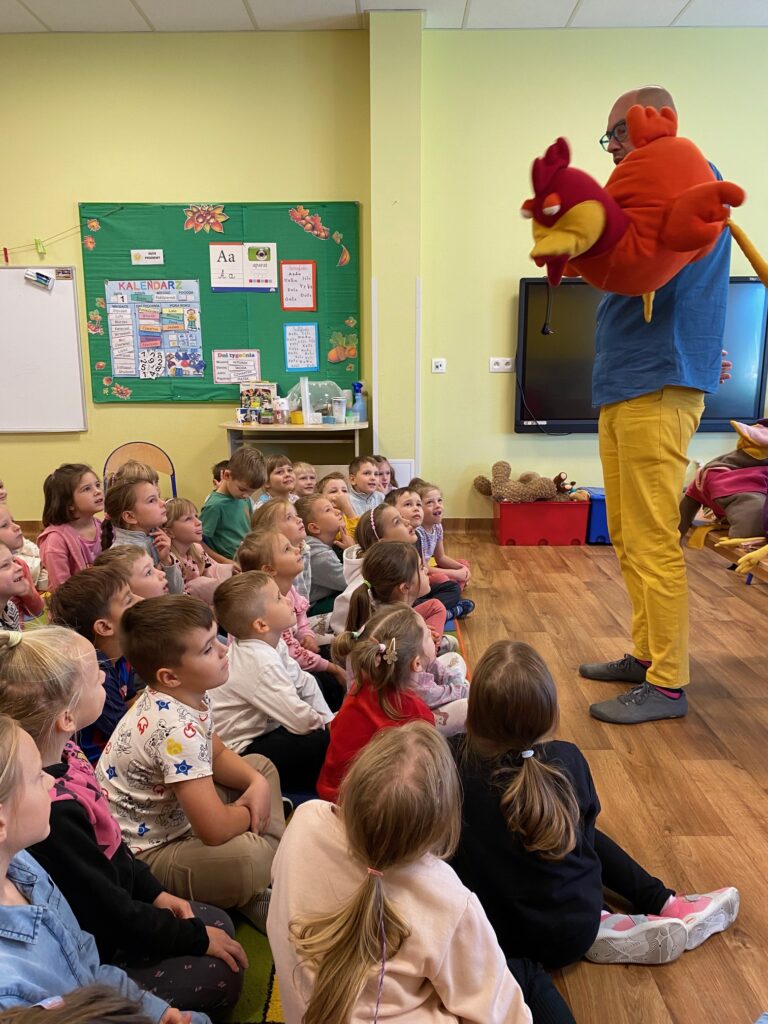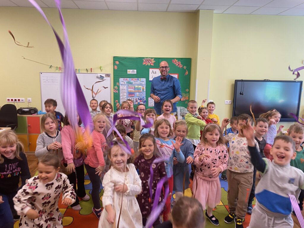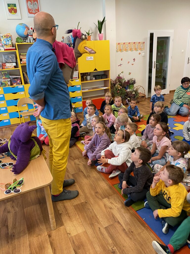 Wizyta pisarza- Pan Poeta 5 października 2025 przez przedszkole Zdjęcia przedstawiają zabawy z Panem Poetą.