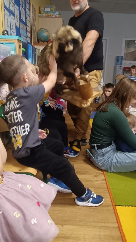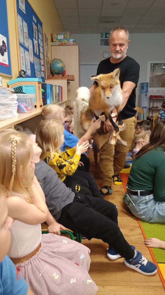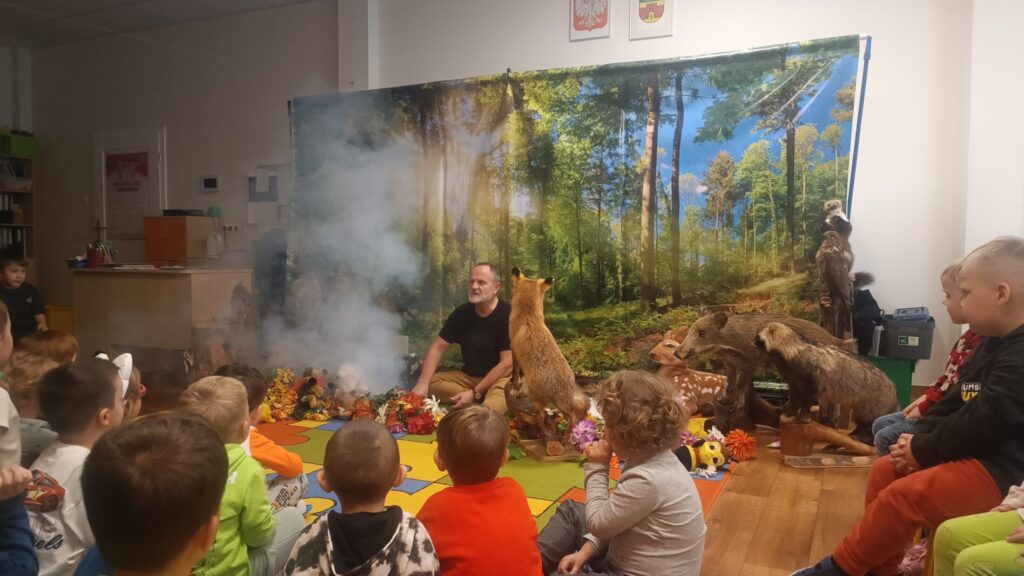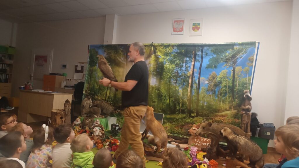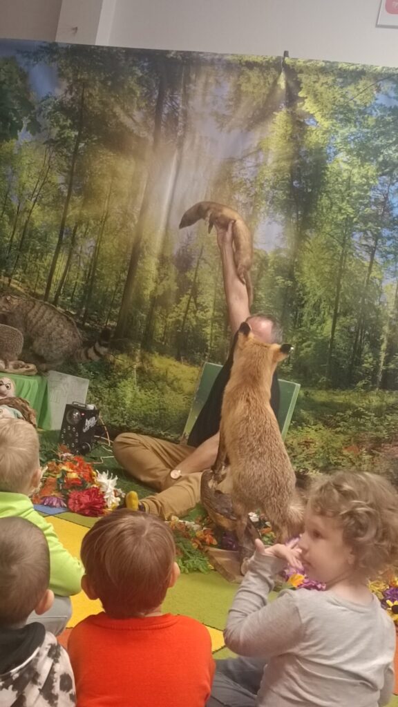 Dzisiaj dzieci uczestniczyły w warsztatach mówiących o mieszkańcach lasu, rozpoznawały dźwięki jakie wydają zwierzęta oraz dowiedziały się wielu ciekawostek o nich.