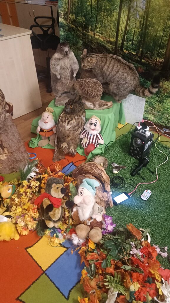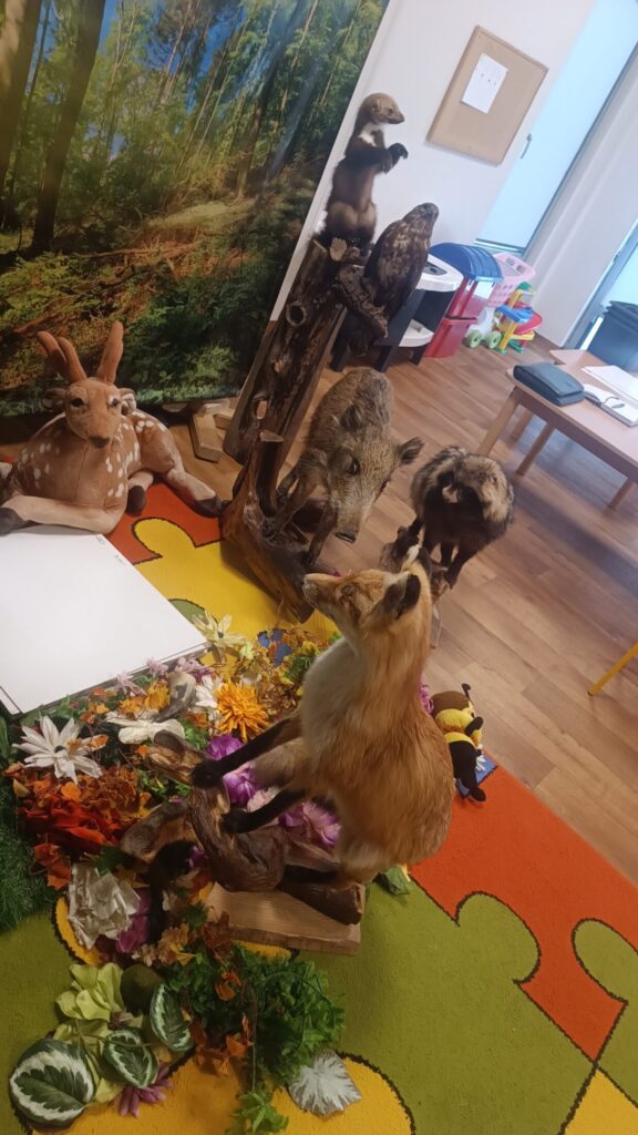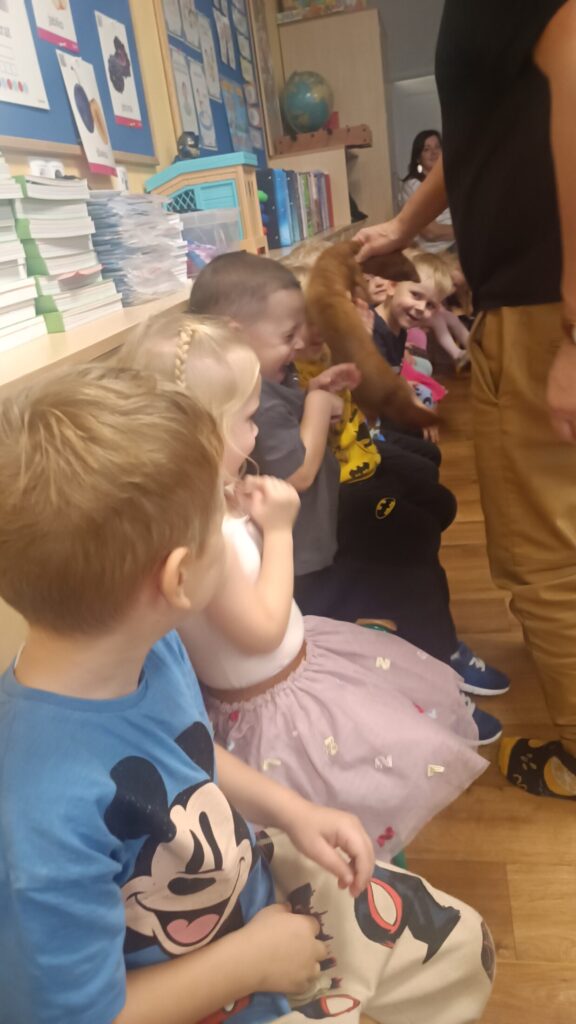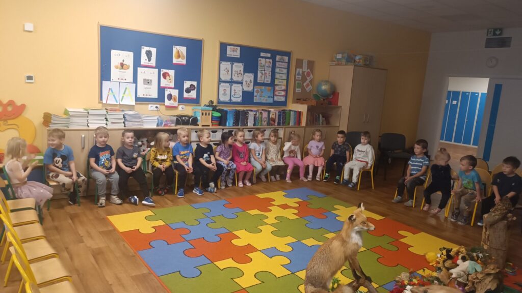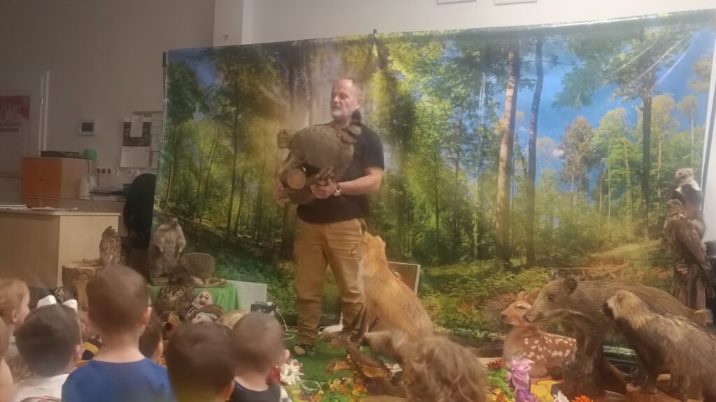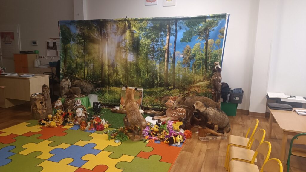 Dzisiaj dzieci uczestniczyły w warsztatach mówiących o mieszkańcach lasu, rozpoznawały dźwięki jakie wydają zwierzęta oraz dowiedziały się wielu ciekawostek o nich.