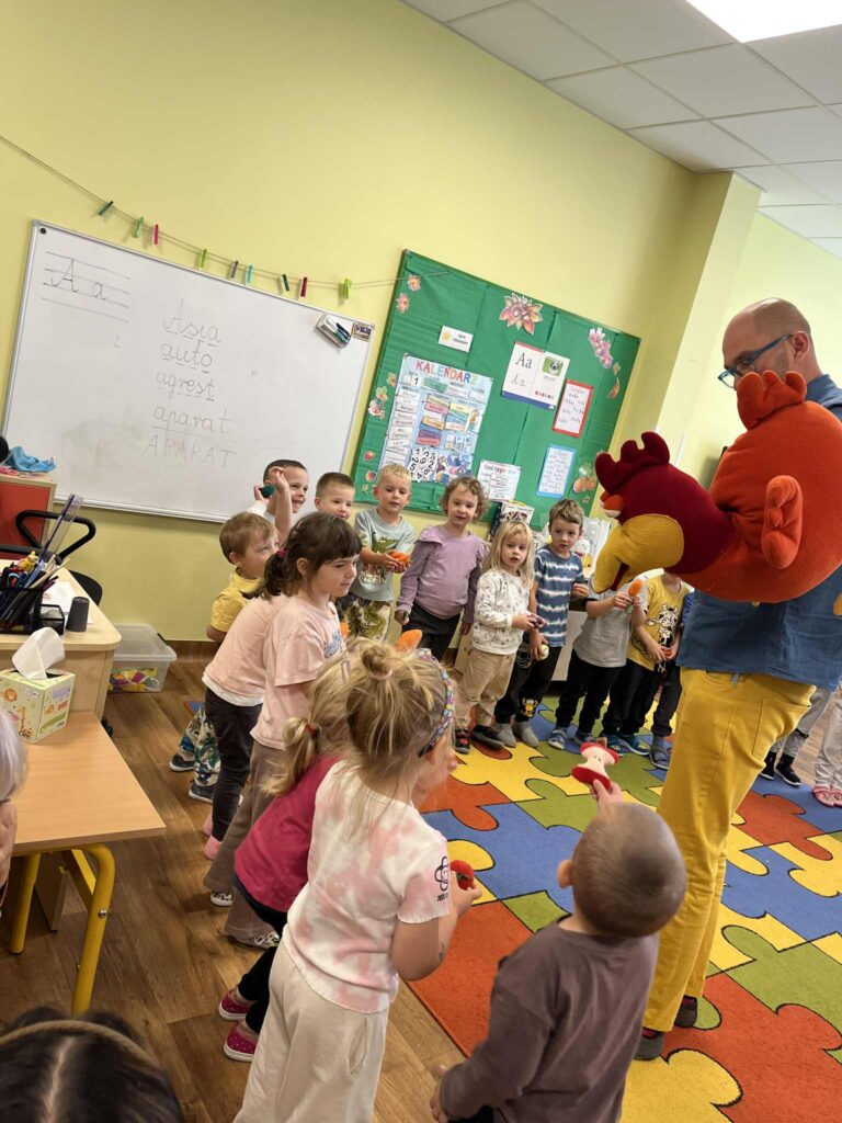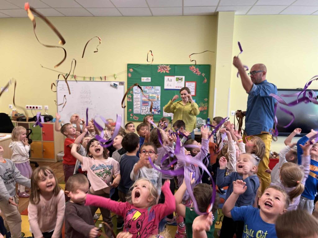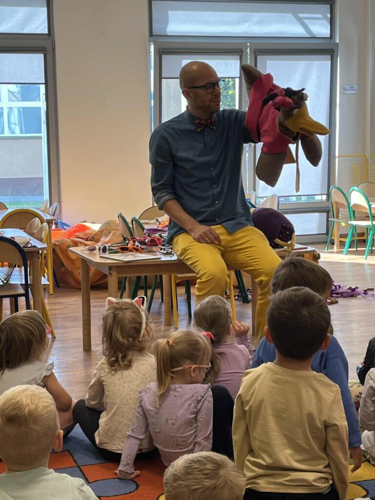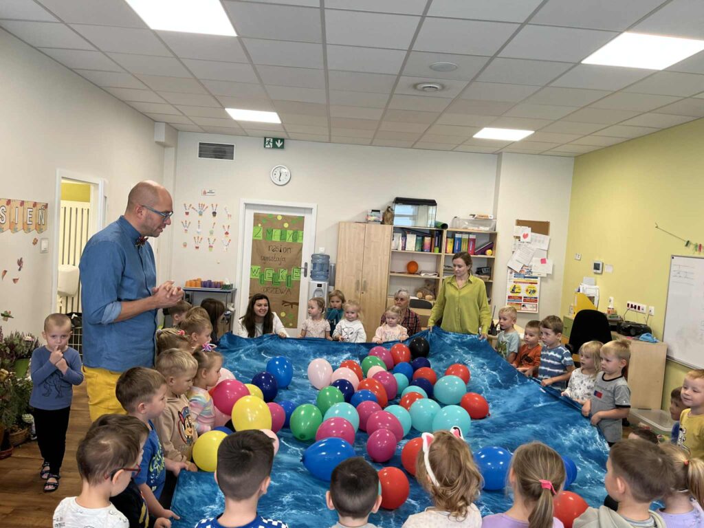Spotkanie z poetą 9 października 2025 przez przedszkole Galeria zdjęć przedstawia dzieci podczas spotkania z „Panem Poetą”.