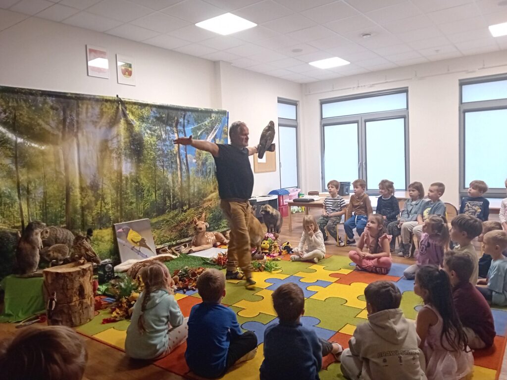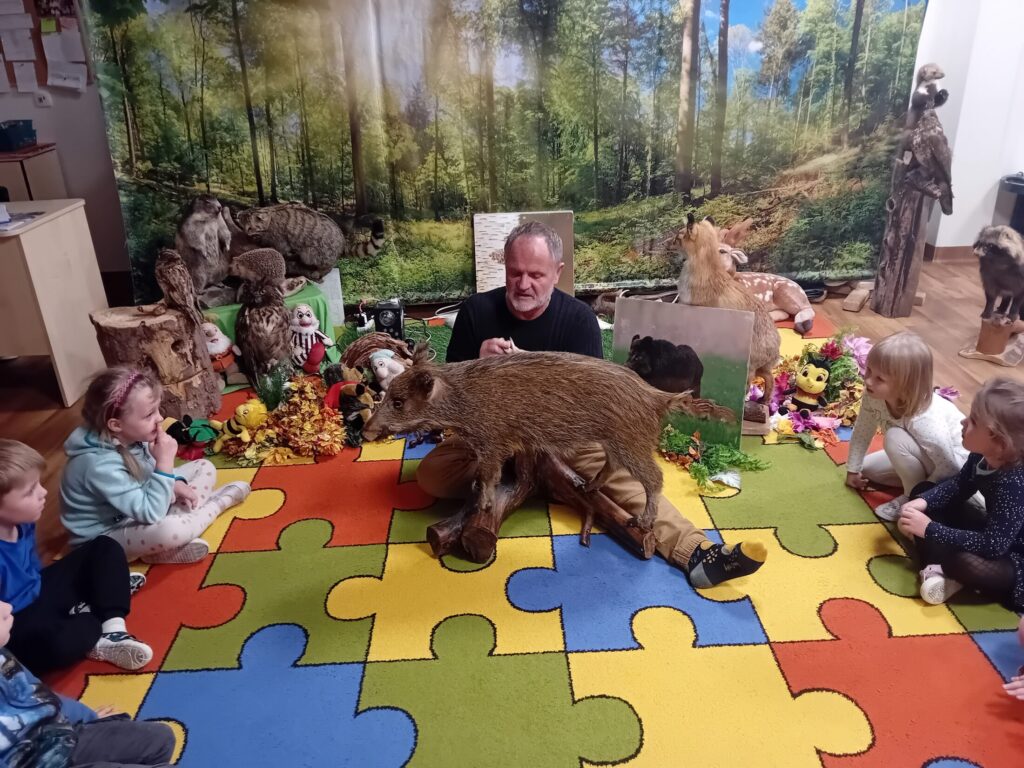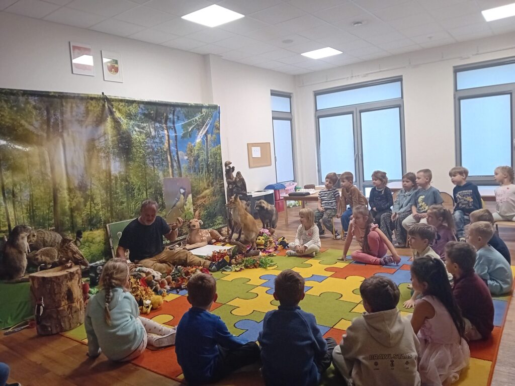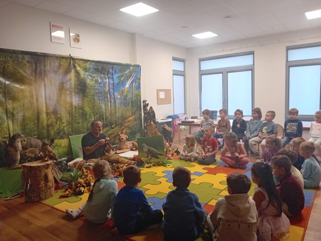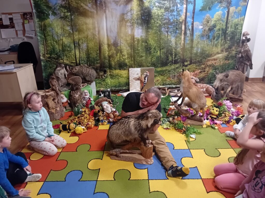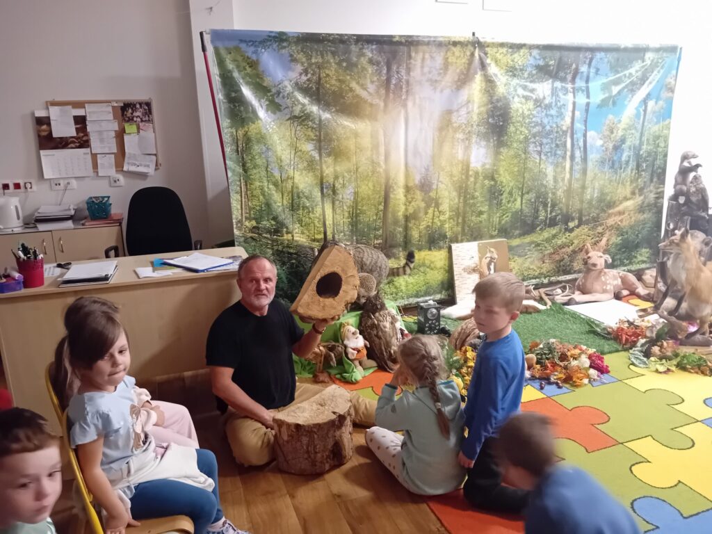 Galeria zdjęć przedstawia dzieci podczas warsztatów przyrodniczych, na których zapoznały sie z sekretami lasu i jego mieszkańców.