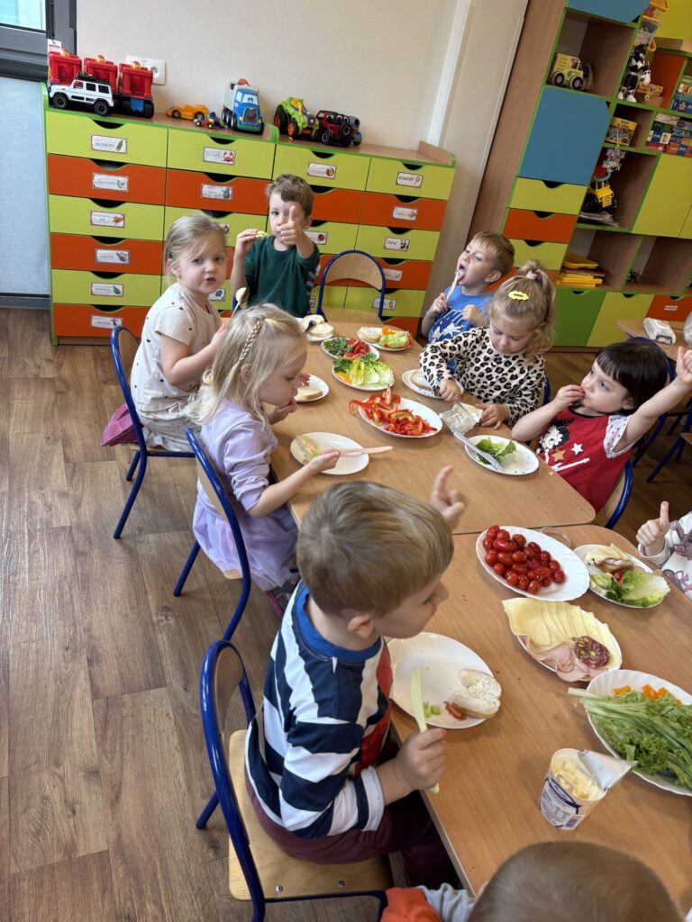 Jestem Zdrowym Przedszkolakiem 16 października 2025 przez przedszkole Dziś przedszkolaki samodzielnie zrobiły zdrowe i pyszne kanapki, które potem zjadły ze smakiem.