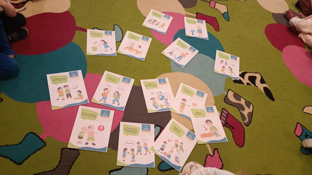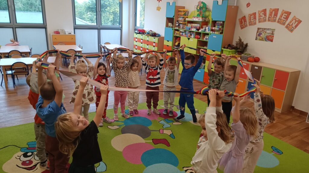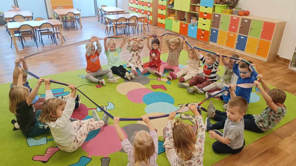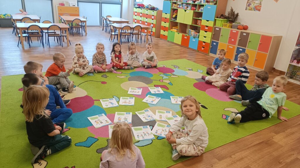 Nasza grupa dołączyła do projektu Zdrowo i Sportowo rozmawiamy o zdrowym odżywianiu, codziennie mamy gimnastykę i jak najwięcej przebywamy na świeżym powietrzu.