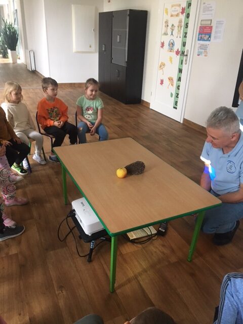 Wesoły Uniwersytet – ,,Kto śpi zimą, a kto nie”. 28 października 2025 przez przedszkole Galeria zdjęć przedstawia dzieci podczas warsztatów przyrodniczych.