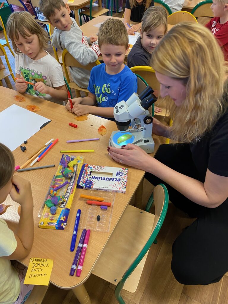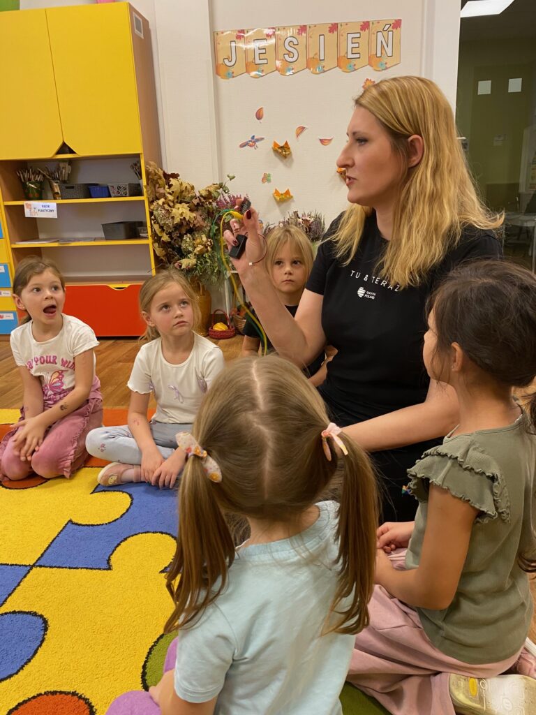 Na zdjęciach widoczne są dzieci uczestniczące w zajęciach przygotowanych przez panią Patrycję i Asię. Tematyka zajęć obejmowała rozmowy o emocjach i uczuciach wykonały na tej podstawie prace plastyczna w grupkach . Poznały rzeczy przewodzące prąd oraz została im przybliżona postać Jana Czochralskiego. Dziękujemy mamie Asi za poświęcony , miło spędzony czas .