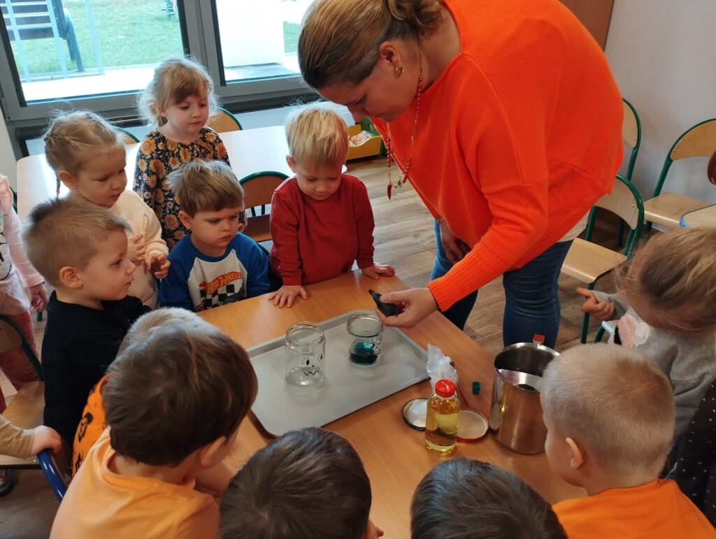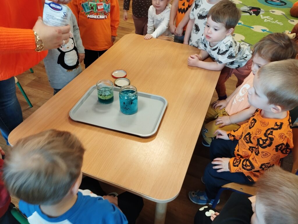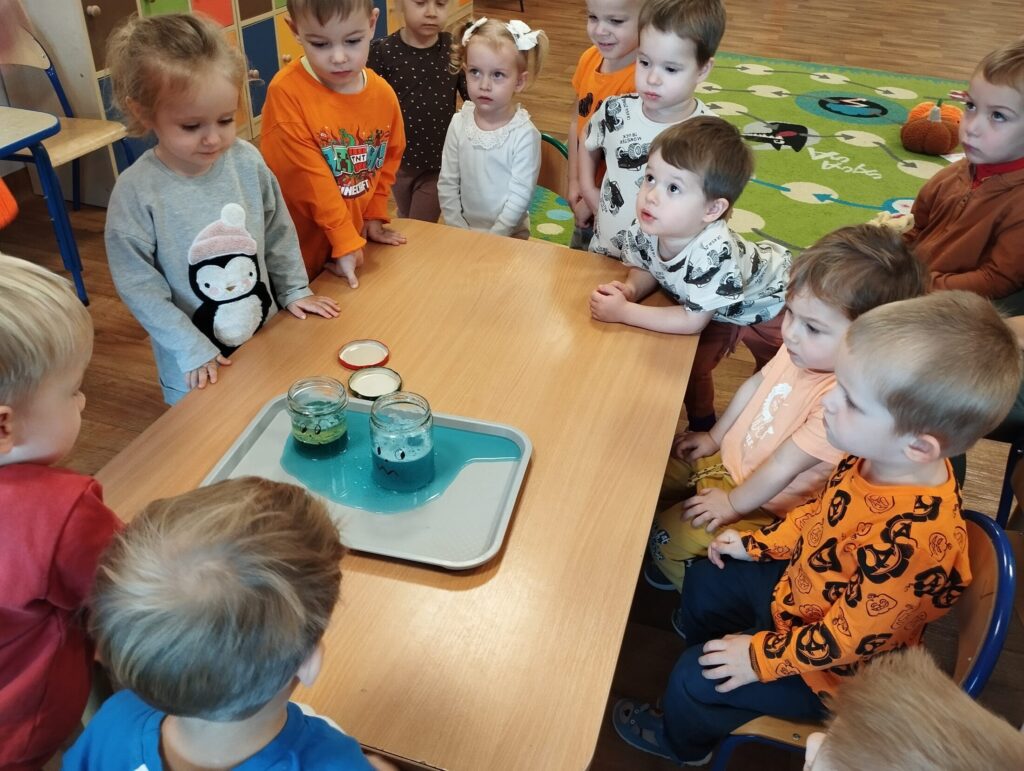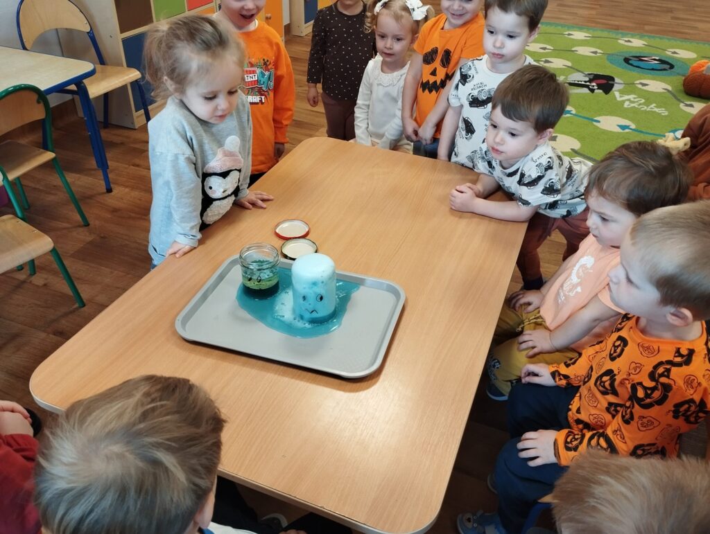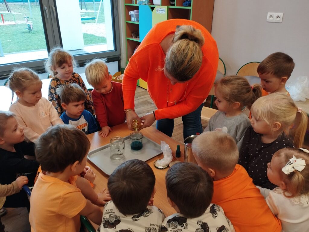 „DUSZKI” – zabawa badawcza 2 listopada 2025 przez przedszkole Galeria zdjęć przedstawia dzieci obecne w tym dniu. Dzieci wzięły udział w zabawie badawczej.