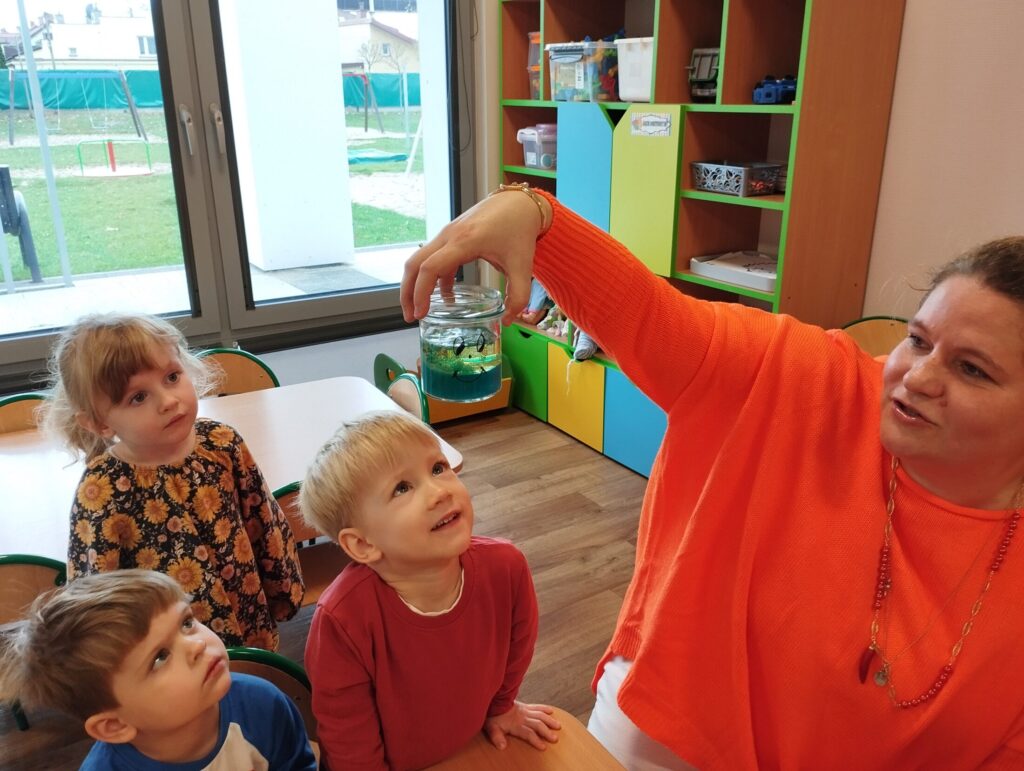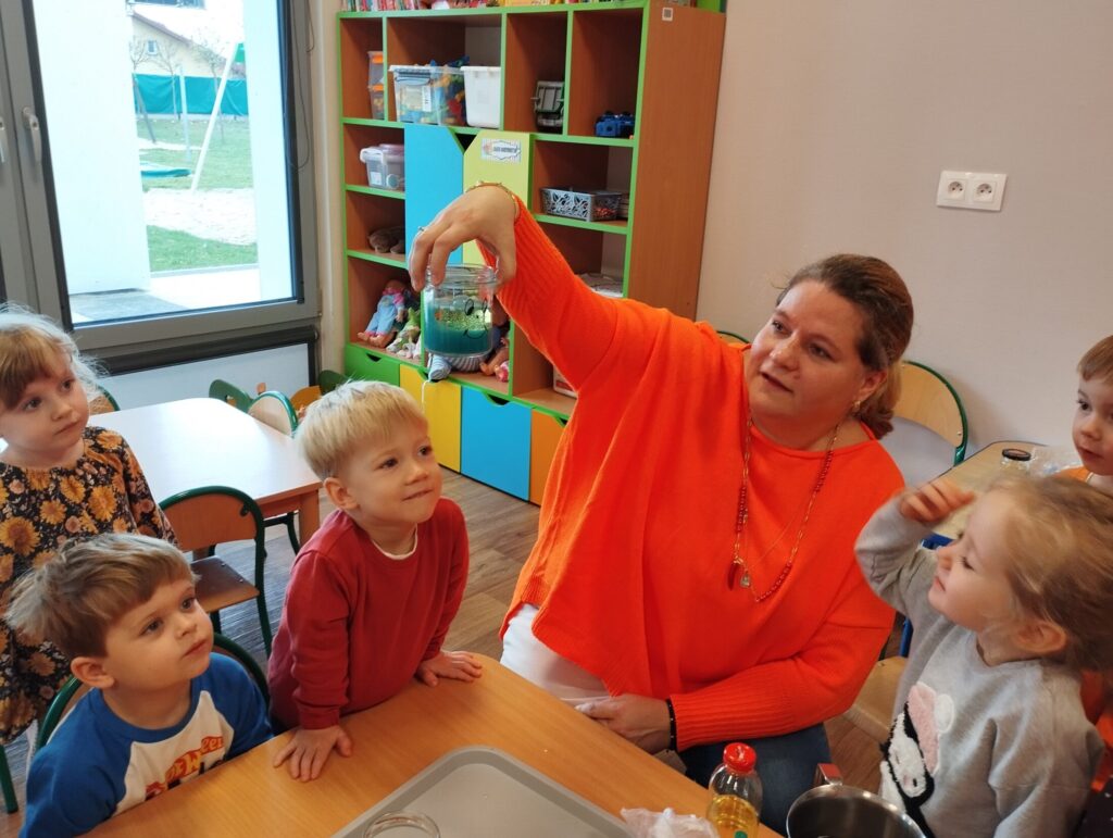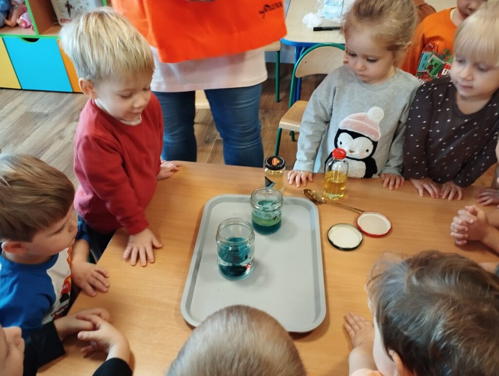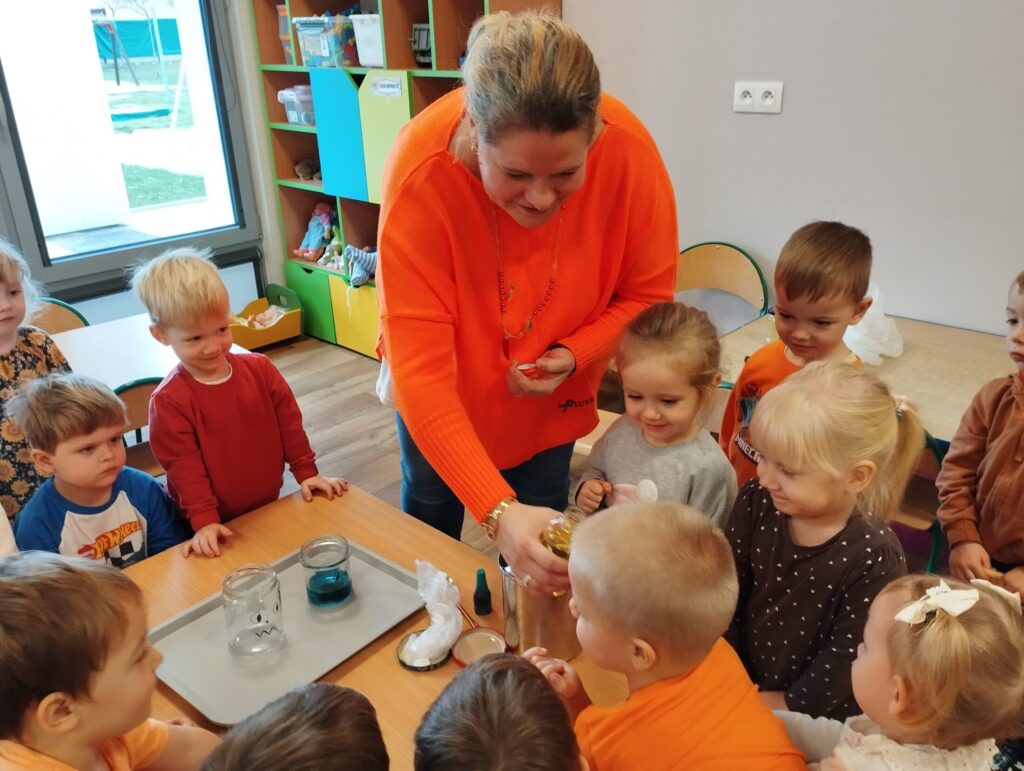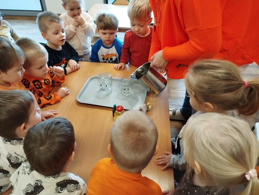 „DUSZKI” – zabawa badawcza 2 listopada 2025 przez przedszkole Galeria zdjęć przedstawia dzieci obecne w tym dniu. Dzieci wzięły udział w zabawie badawczej.