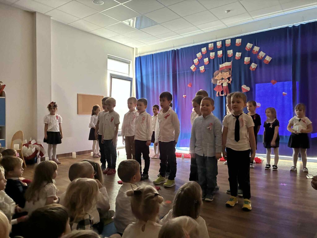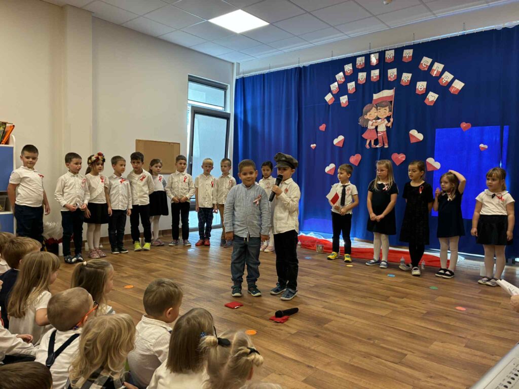 Zdjęcia przedstawiają naszą grupę podczas wykonania słowno-muzycznego przestawienia z okazji 107 rocznicy odzyskania przez Polskę Niepodległości.