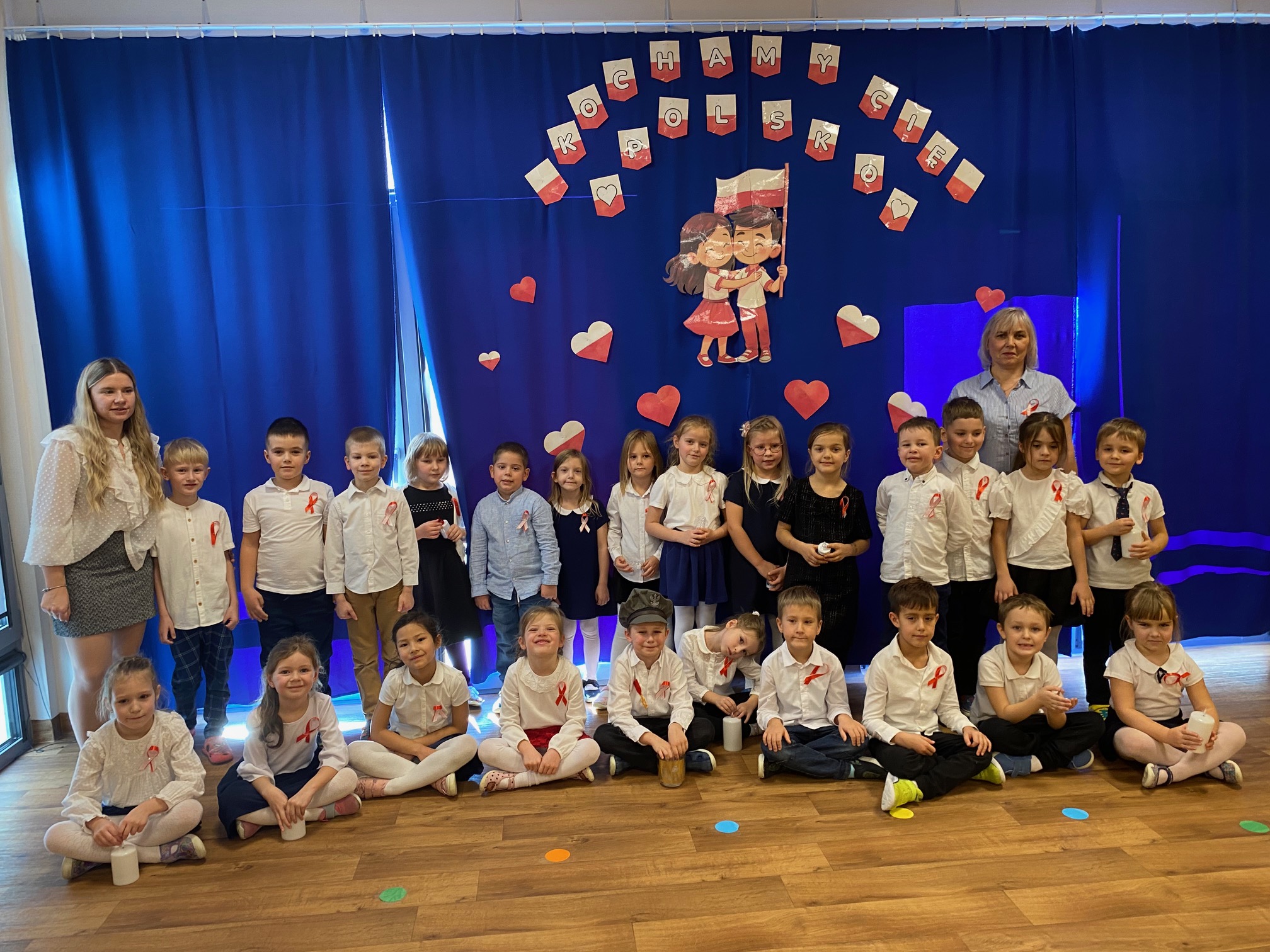 Zdjęcia przedstawiają naszą grupę podczas wykonania słowno-muzycznego przestawienia z okazji 107 rocznicy odzyskania przez Polskę Niepodległości.