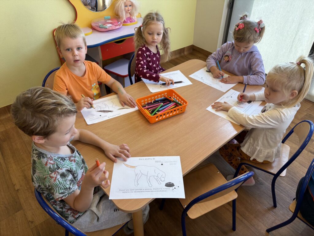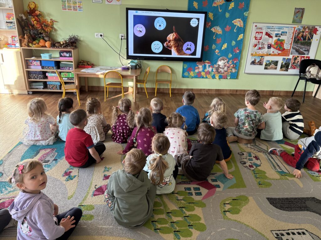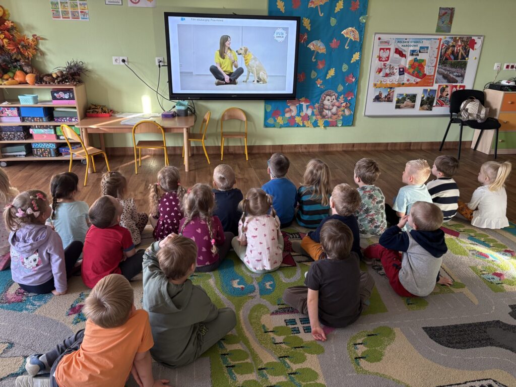 Dzieci dowiedziały się jak czytać psie komunikaty oraz jak reagować i zachowywać się aby budować bezpieczną relację z psami.