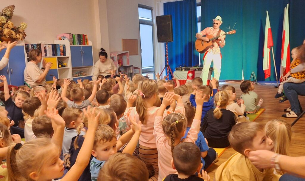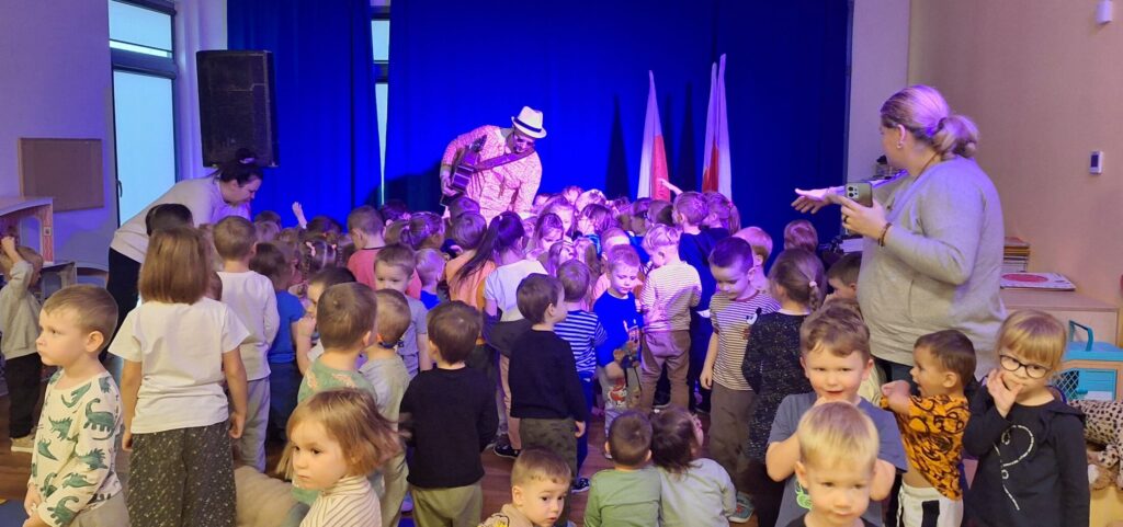,,WIELKI KONCERT MAŁEGO PATRIOTY”-PRZEDSTAWIENIE PATRIOTYCZNE 16 listopada 2025 przez przedszkole Galeria zdjęć przedstawia przedszkolaki biorące udział w Koncercie Małego Patrioty”.
