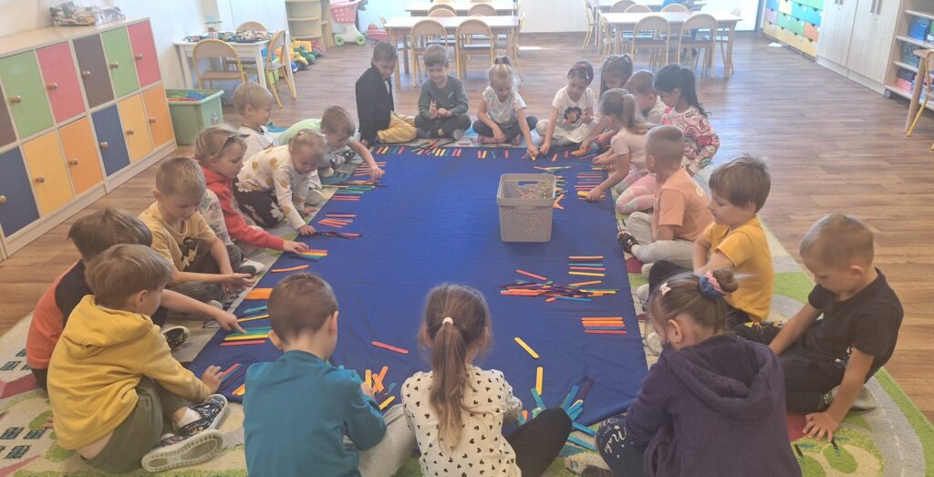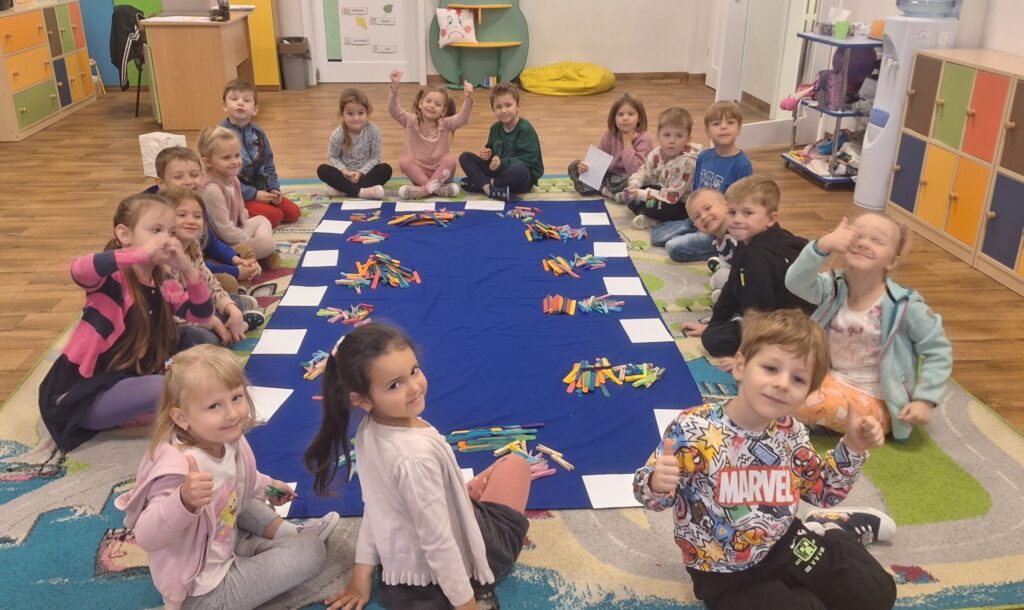 ZABAWY MATEMATYCZNE 16 listopada 2025 przez przedszkole Galeria przedstawia zdjęcia dzieci podczas zabaw matematycznych.