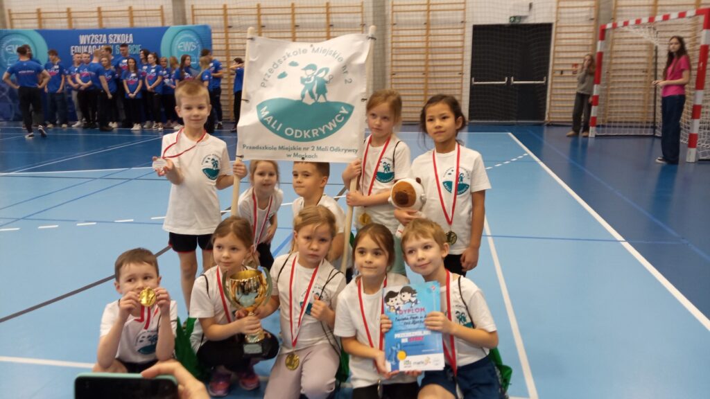 Na Olimpiadzie nasze Przedszkole reprezentowały dzieci z grupy „Badacze”. Razem z kibicującymi nam rodzicami spędziliśmy miło sobotnie przedpołudnie. Szczególnie dziękujemy P. Michałowi -tacie Zosi za zaangażowanie i czynny współudział w przygotowaniach i udziale w Olimpiadzie. Podczas zawodów w wesołej, wspólnej i zdrowej rywalizacji uczestniczyliśmy w wielu wymagających konkurencjach. Wróciliśmy z pucharem, medalami, dyplomami oraz z niespodzianką…