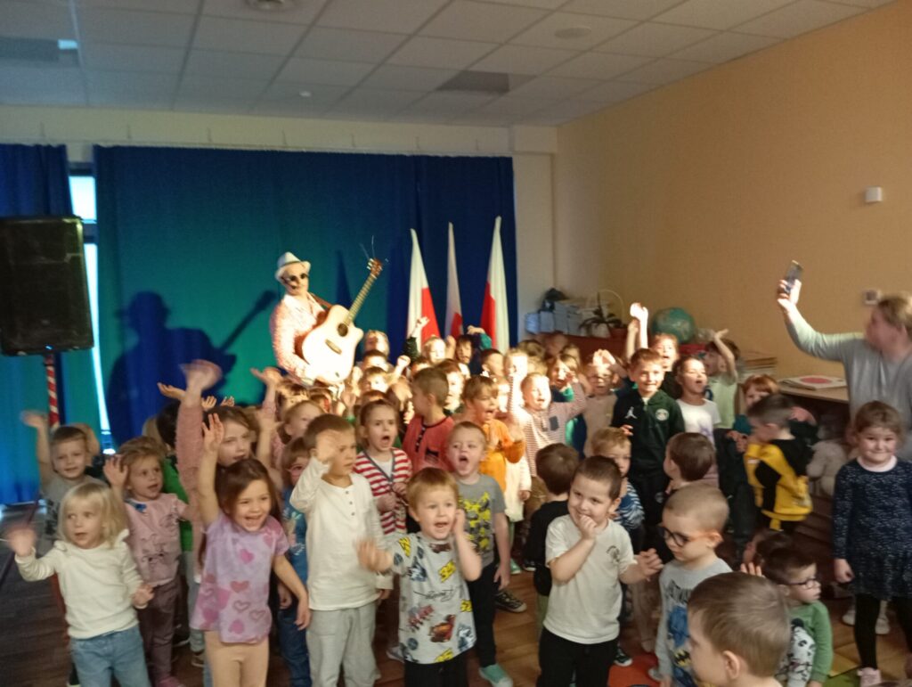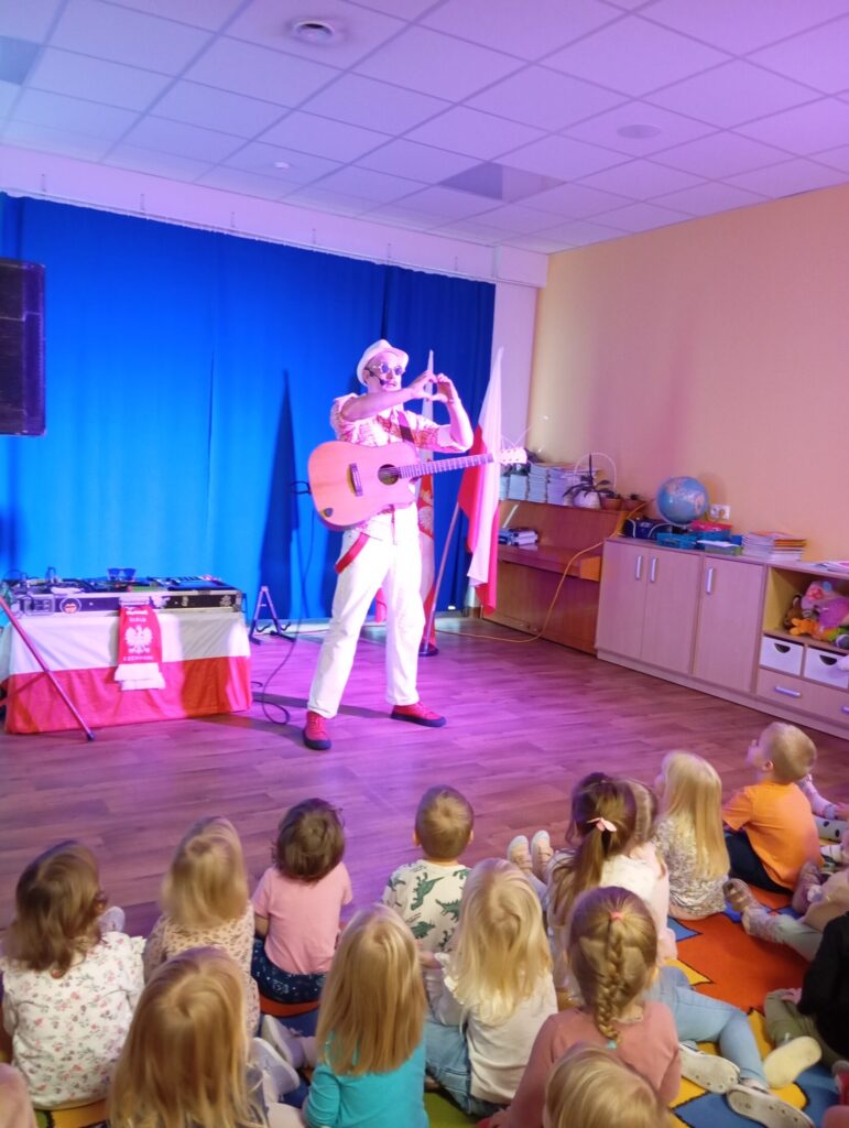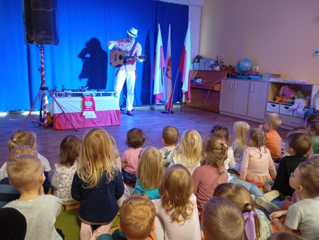 „Wielki koncert małego patrioty” – koncert muzyczny 18 listopada 2025 przez przedszkole Galeria zdjęć przedstawia dzieci podczas koncertu muzycznego.