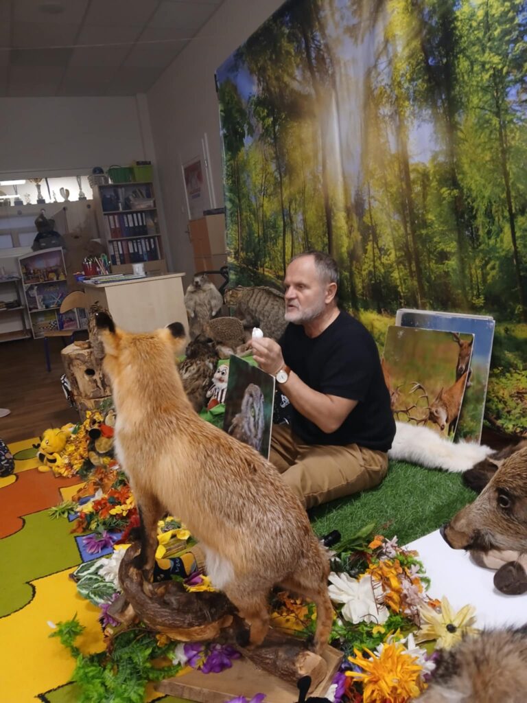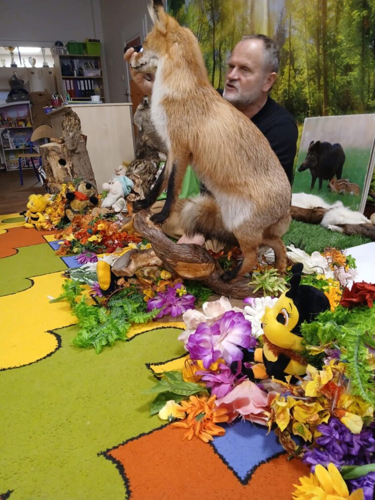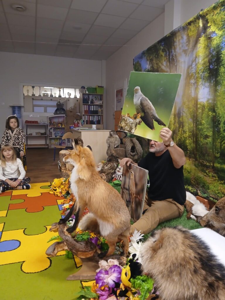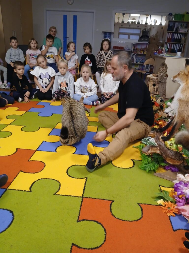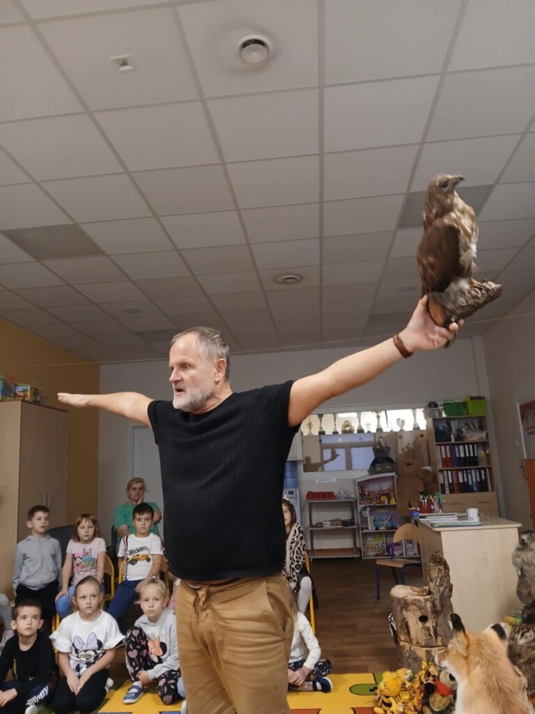 „Kto śpi zimą a kto nie” – warsztaty 20 listopada 2025 przez przedszkole Galeria zdjęć przedstawia dzieci podczas warsztatów przyrodniczych, na których dzieci poznały mieszkańców lasu.