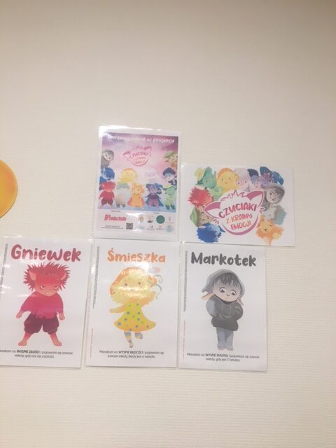 Galeria zdjęć przedstawia dzieci podczas realizacji projektu. Przedszkolaki poznały kolejną emocję – smutek, w której bohaterem był Markotek.