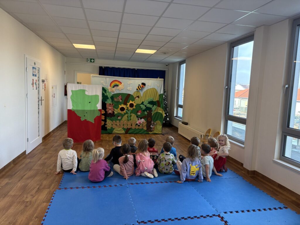 Teatrzyk 28 listopada 2025 przez przedszkole Dzieci obejrzały spektakl pod tytułem „Jak koziołek Matołek poznał czym jest patriotyzm”