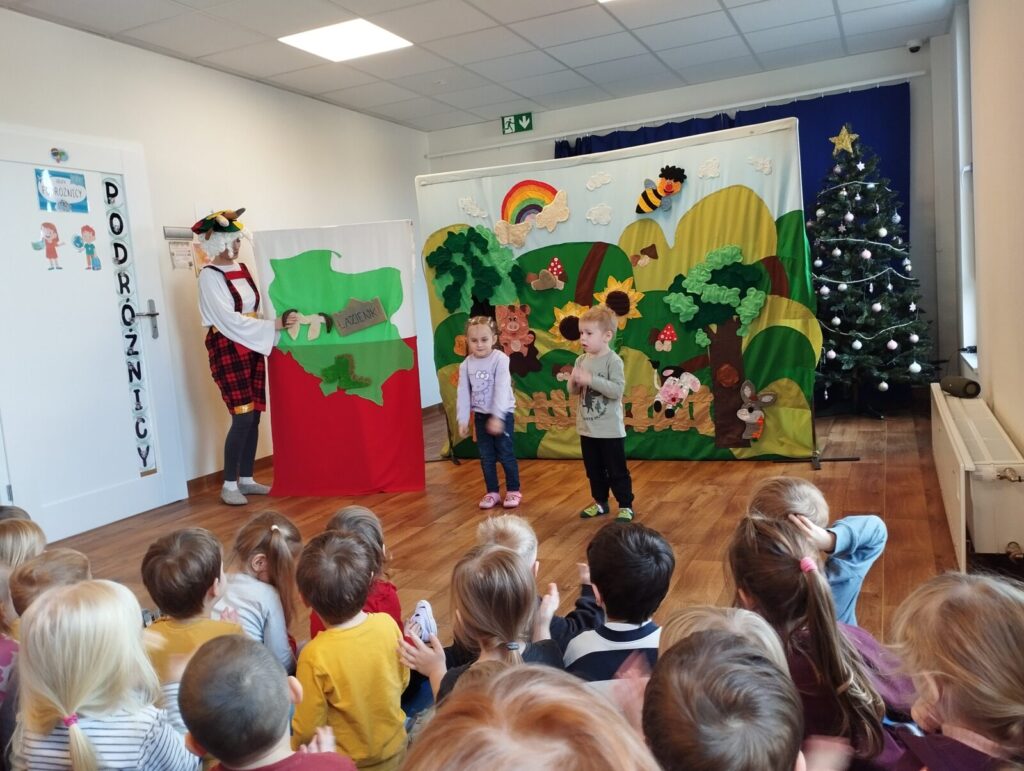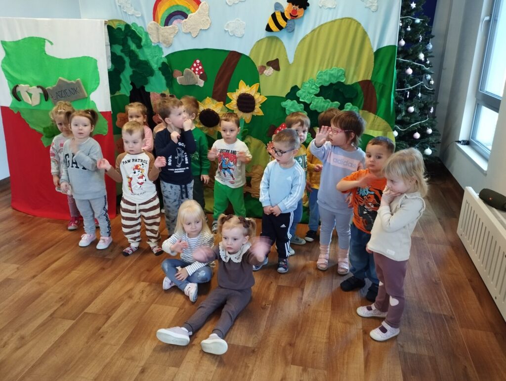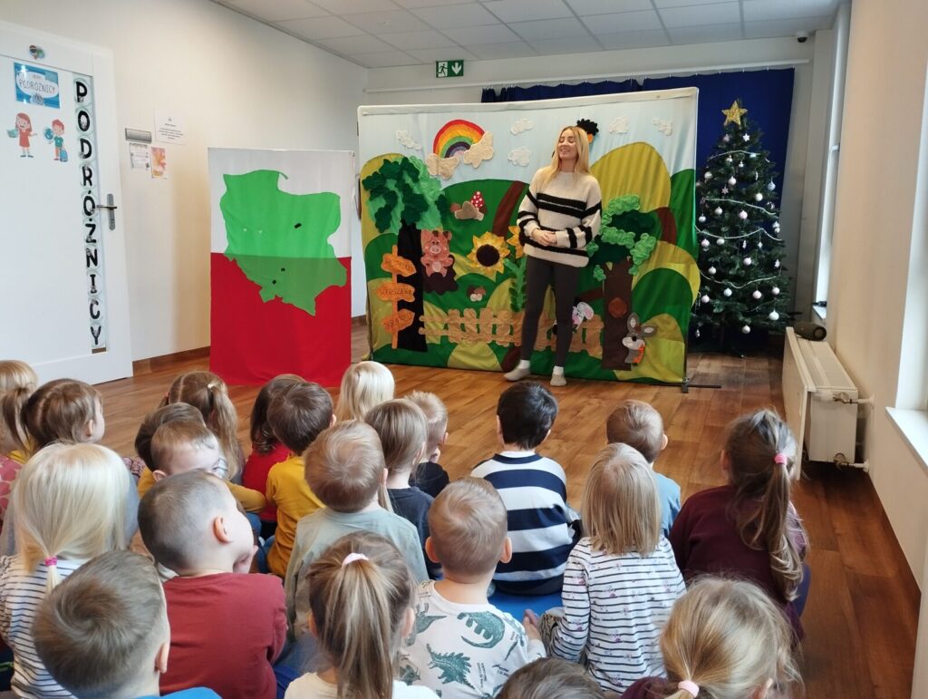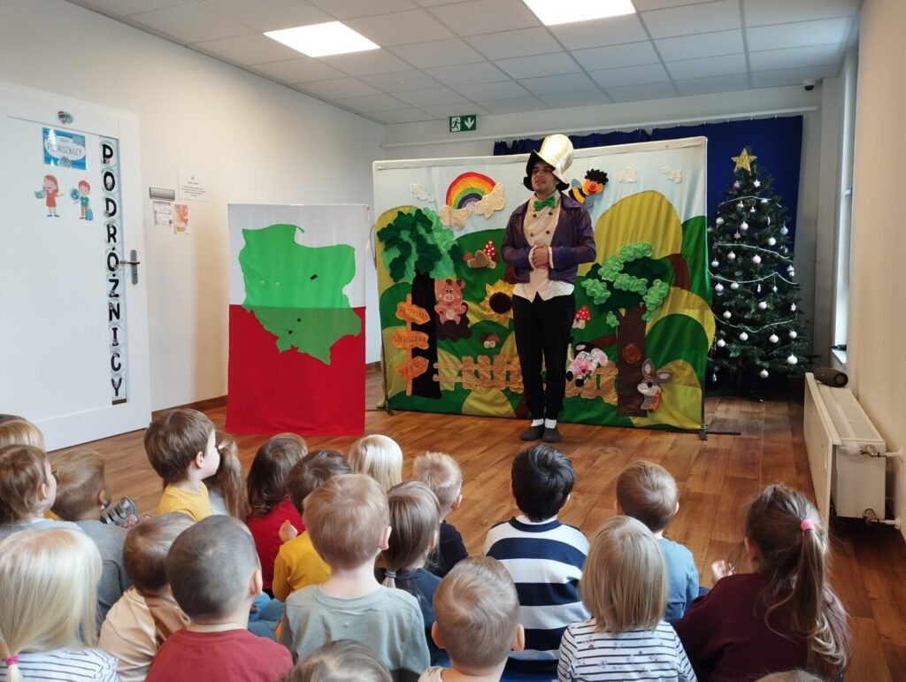 Teatrzyk, pt. „Jak Koziołek Matołek poznał czym jest patriotyzm?” 30 listopada 2025 przez przedszkole Galeria zdjęć przedstawia dzieci obecne w tym dniu.