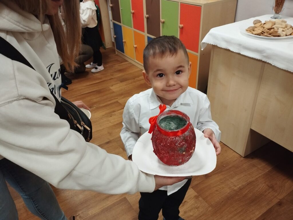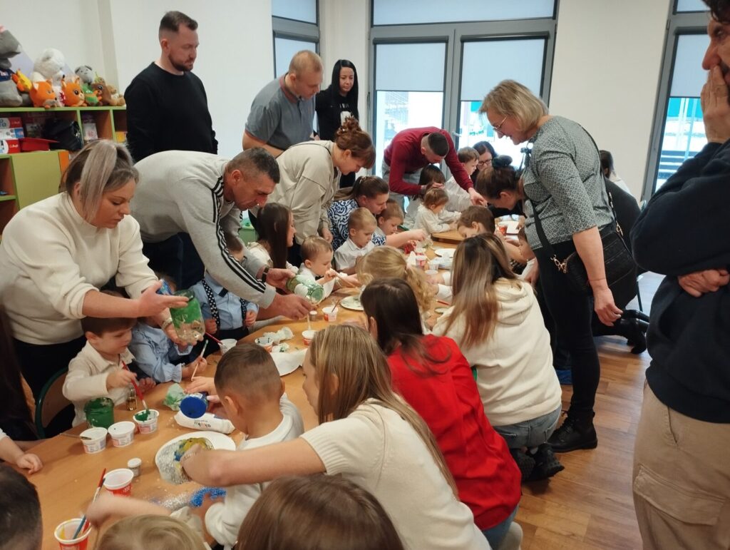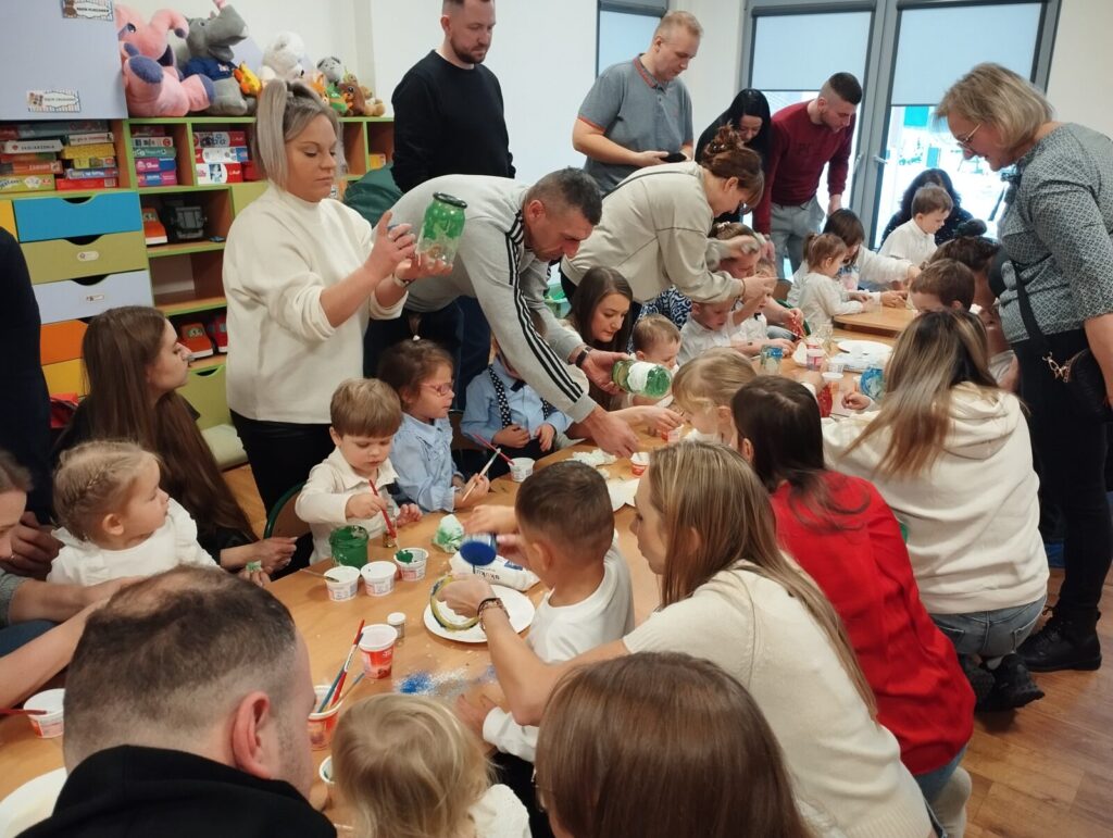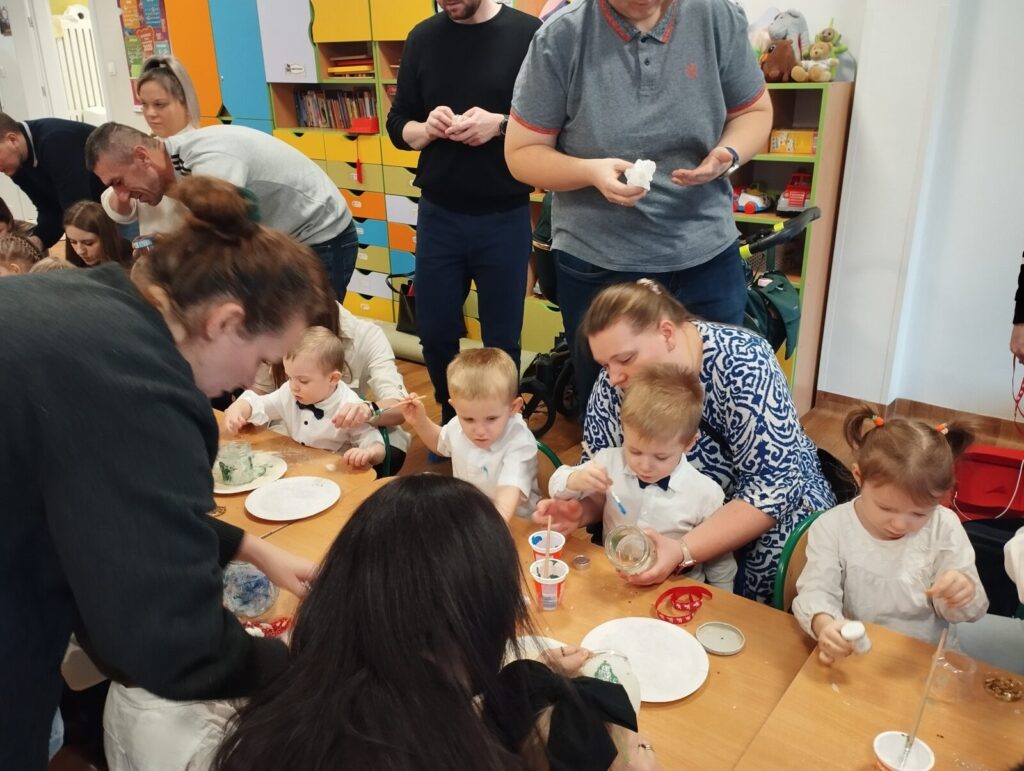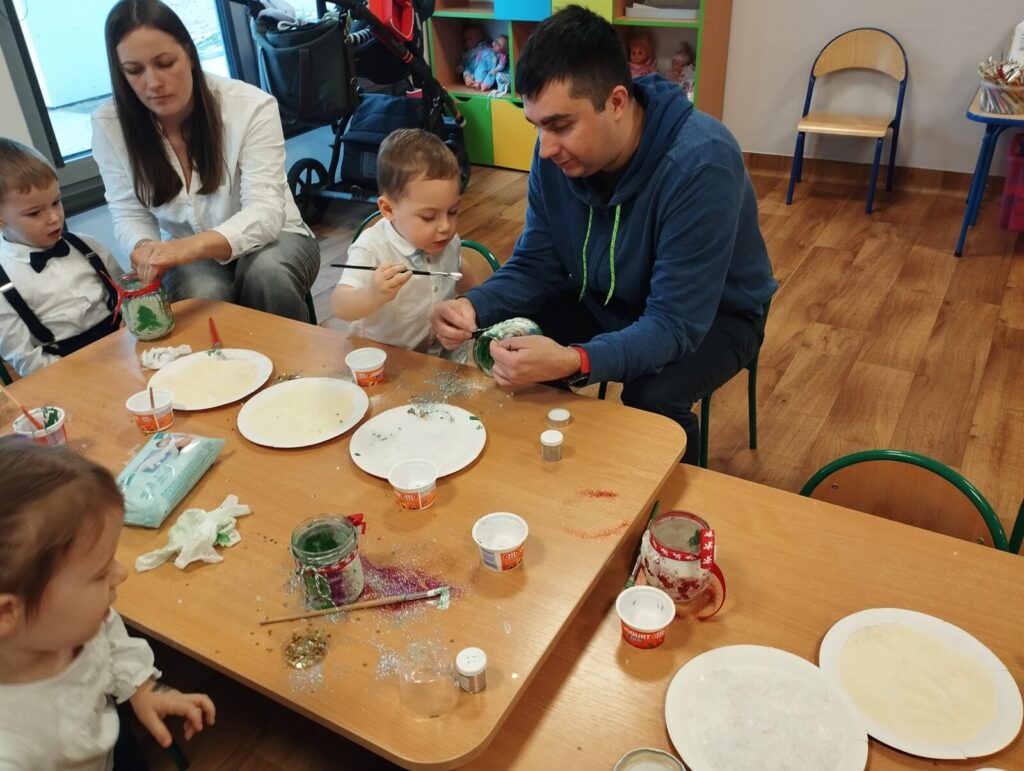 Warsztaty świąteczne z Rodzicami 30 listopada 2025 przez przedszkole Galeria zdjęć przedstawia dzieci wykonujące razem z rodzicami lampiony.