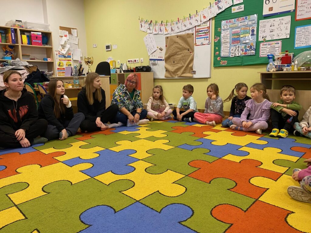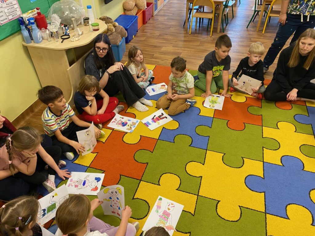 Warsztaty z młodzieżą „Każdy jest inny” 30 listopada 2025 przez przedszkole Zdjęcia przedstawiają dzieci podczas warsztatów.