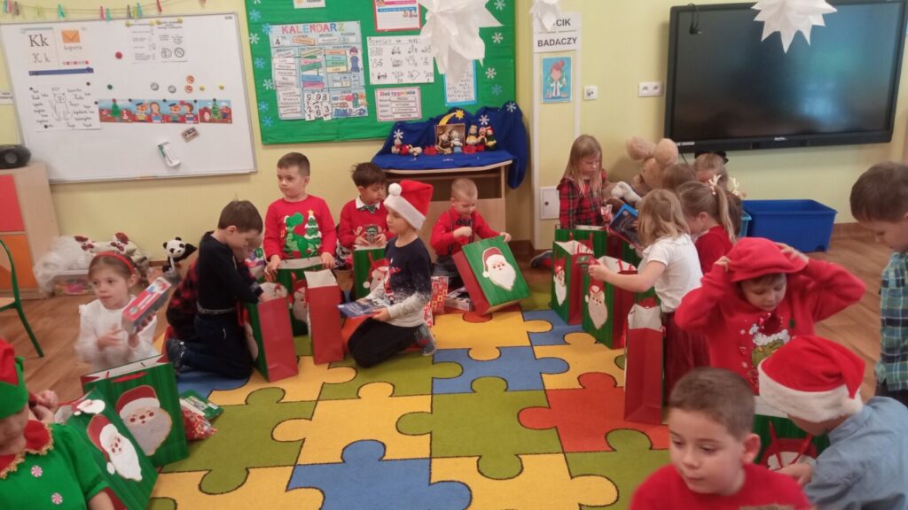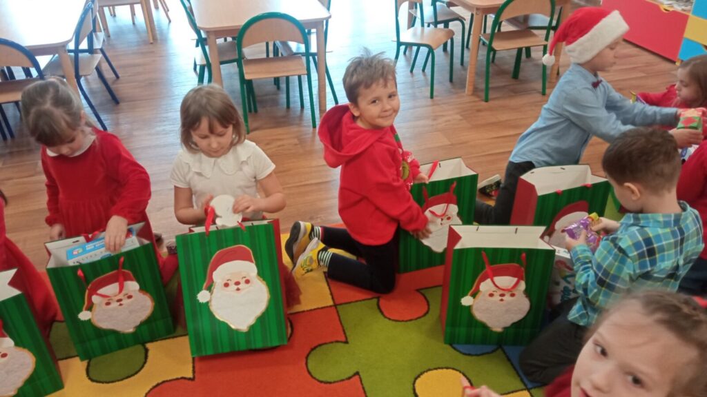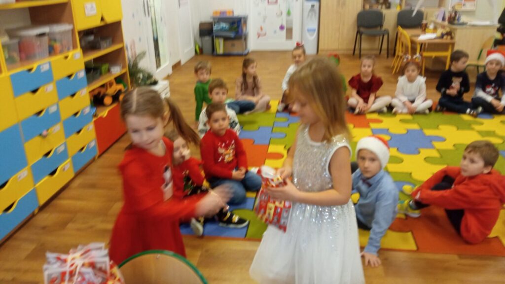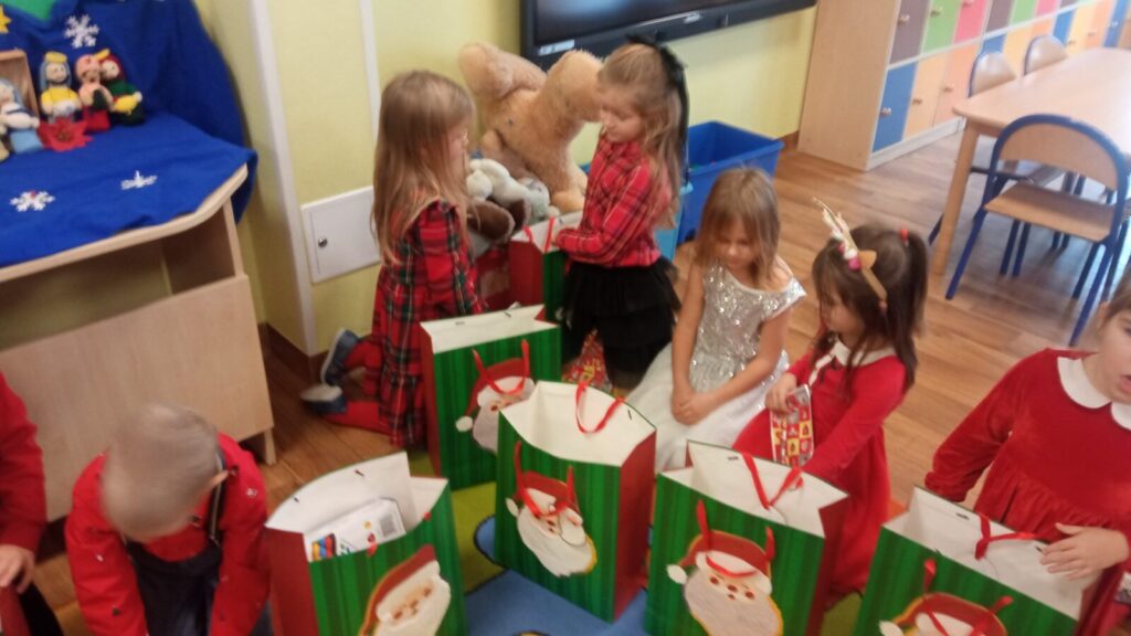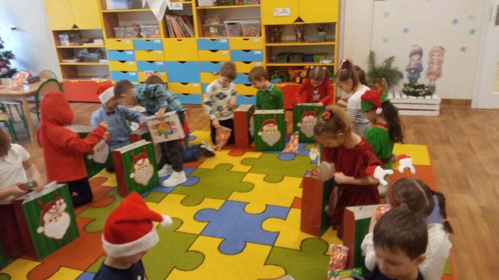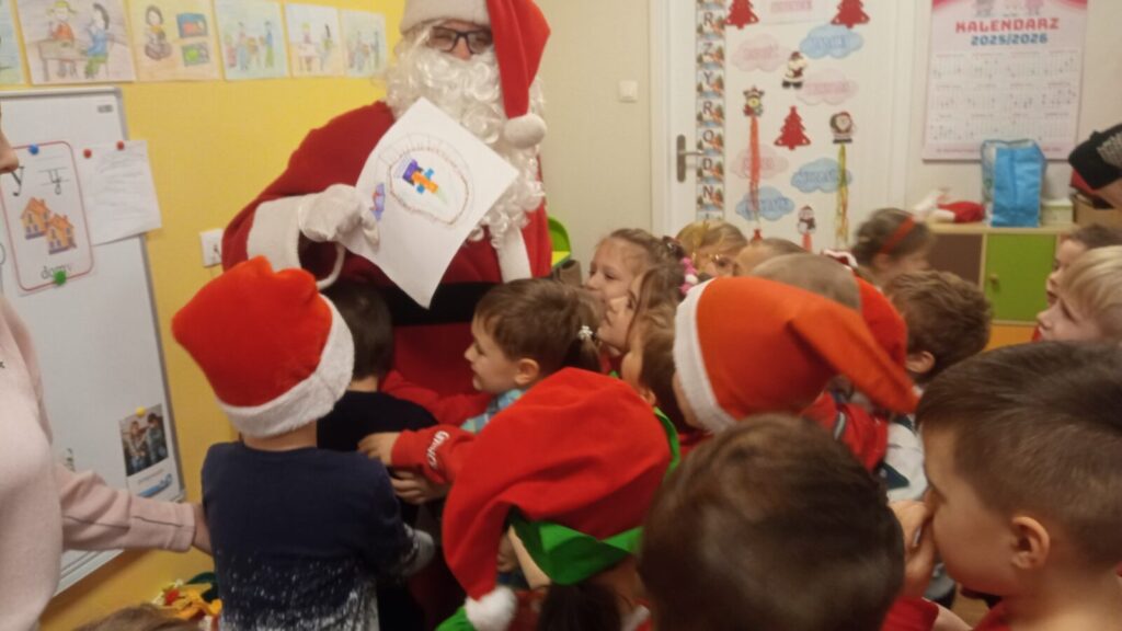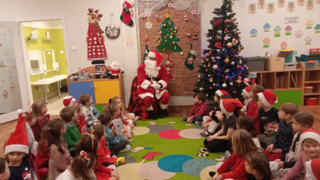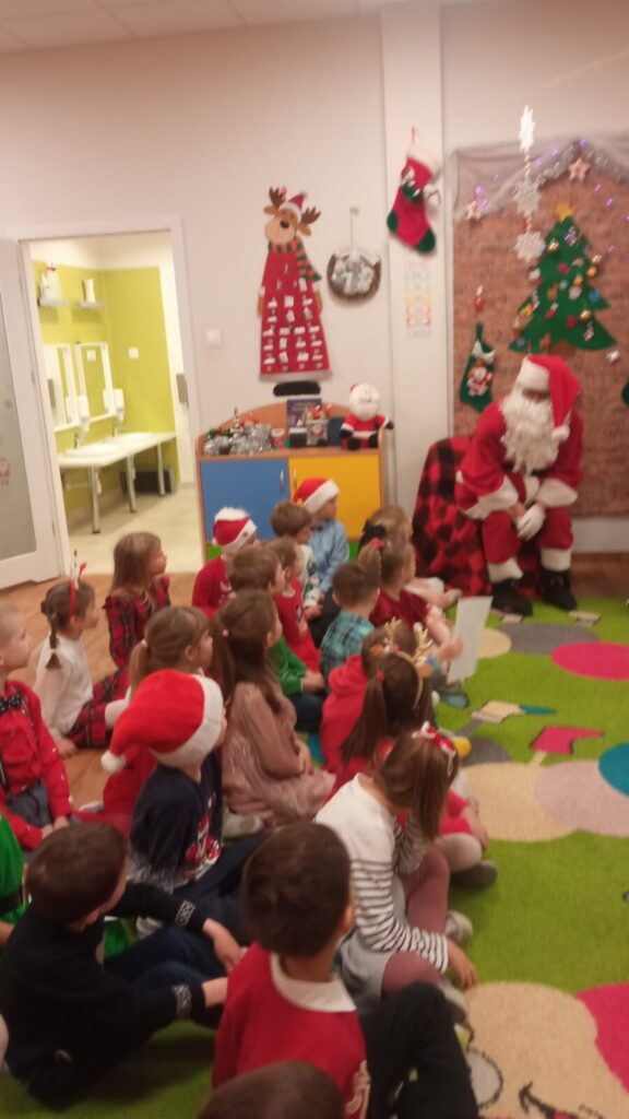 W grudniowe przedpołudnie przedszkolaków odwiedził Mikołaj. Podczas spotkania dzieci dużo rozmawiały z nim o swoich świątecznych zapotrzebowaniach, śpiewały dla Mikołaja oraz złożyły przed nim „przysięgę grzeczności”. Po spotkaniu rozpakowały swoje prezenty oraz zrobiły pamiątkowe zdjęcia z Mikołajem. Dziękujemy Mikołajowi za wspaniałe prezenty oraz jego Elfom- niezastąpionym pomocnikom.