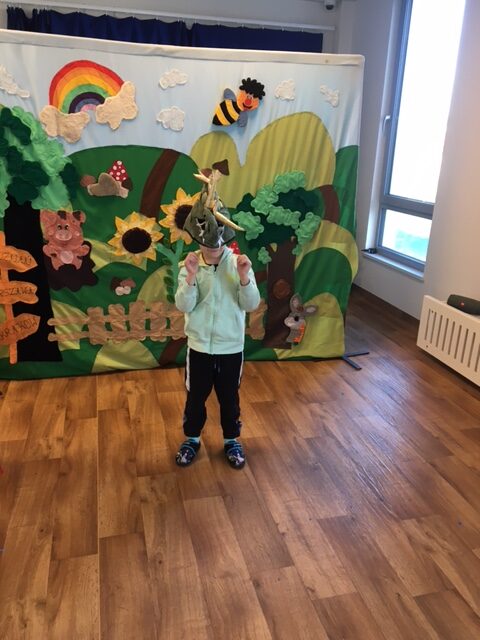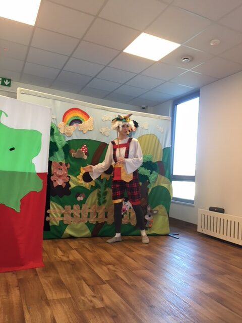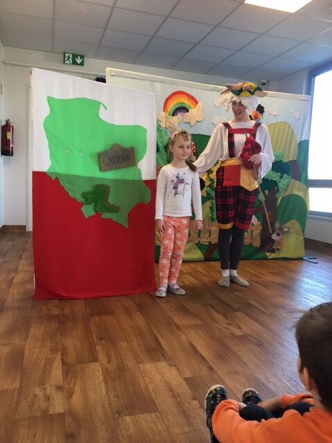 ,,Jak Koziołek Matołek odkrył, co to jest patriotyzm” – teatrzyk 8 grudnia 2025 przez przedszkole Galeria zdjęć przedstawia dzieci podczas oglądania teatrzyku.