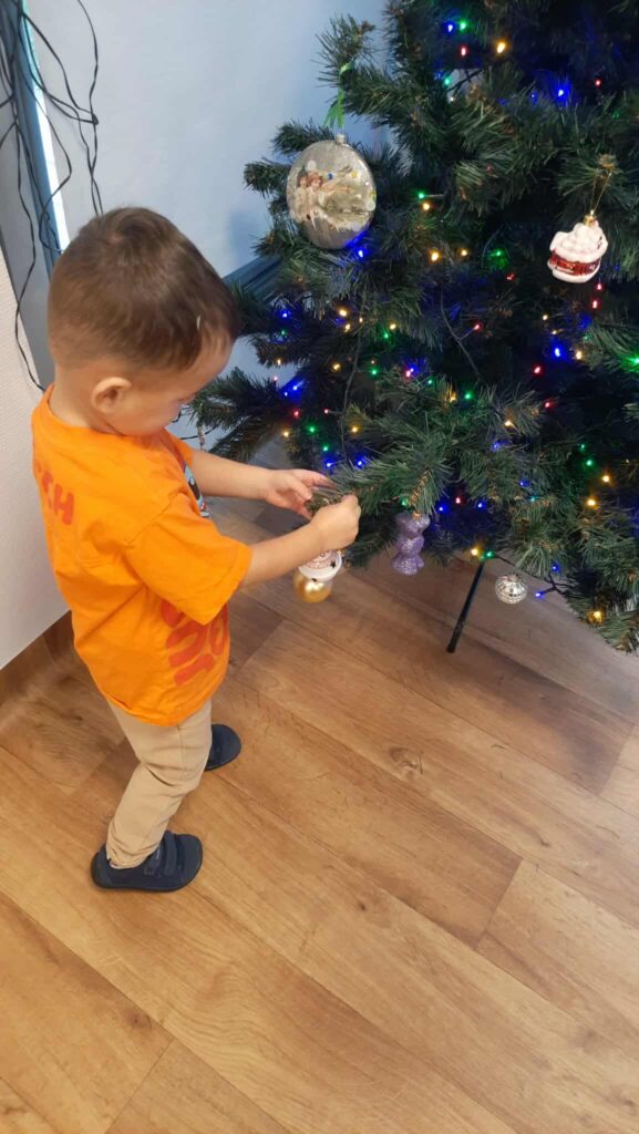 Ubieranie choinki – to moment , na który z niecierpliwością czekały wszystkie przedszkolaki. ,,Sportowcy” z zapałem przystąpiły do zawieszania na gałązkach ozdób. Drzewko zostało przystrojone bardzo szybko, wygląda wyjątkowo i przypomina nam, że Święta Bożego Narodzenia zbliżają się tuż, tuż…