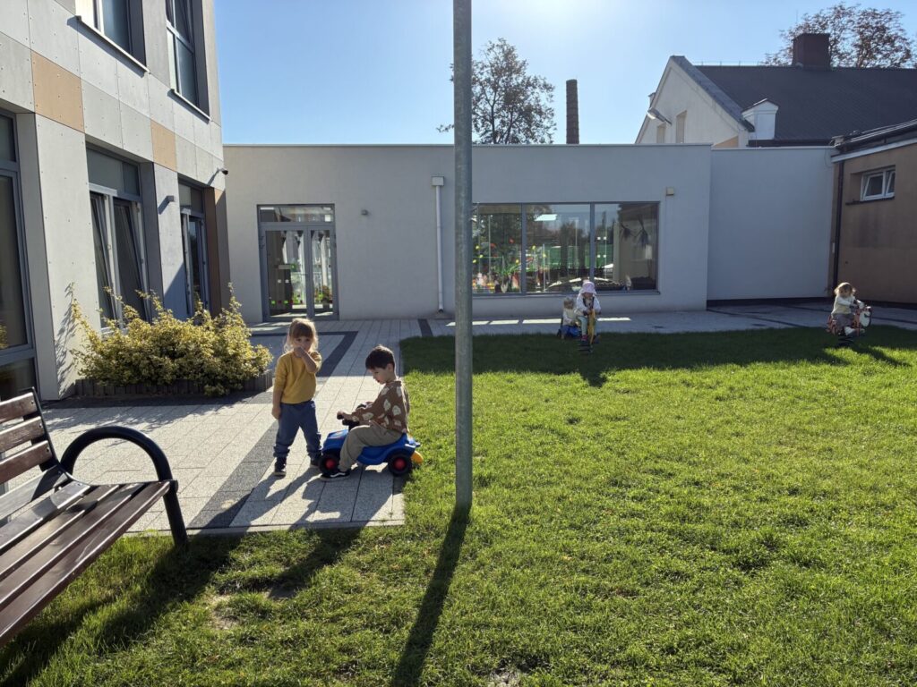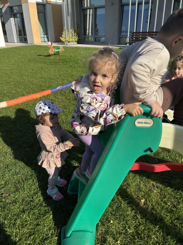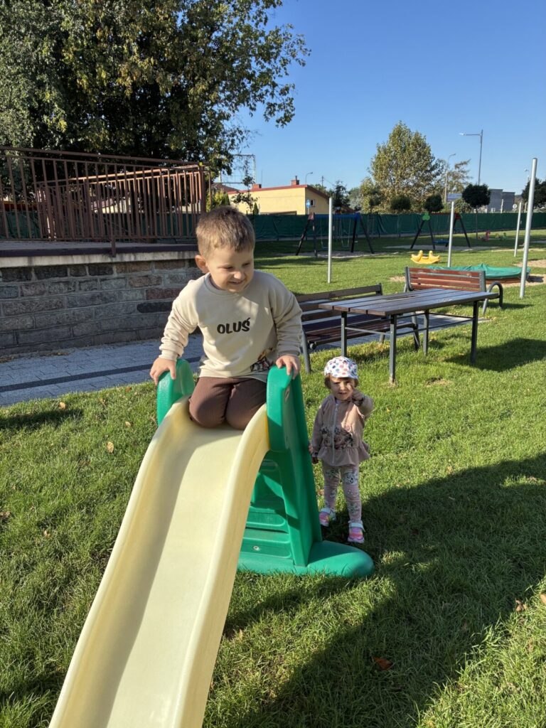 Zabawy na placu zabaw 14 grudnia 2025 przez przedszkole Zdjęcia przedstawiają Artystów podczas zabawy na placu zabaw.