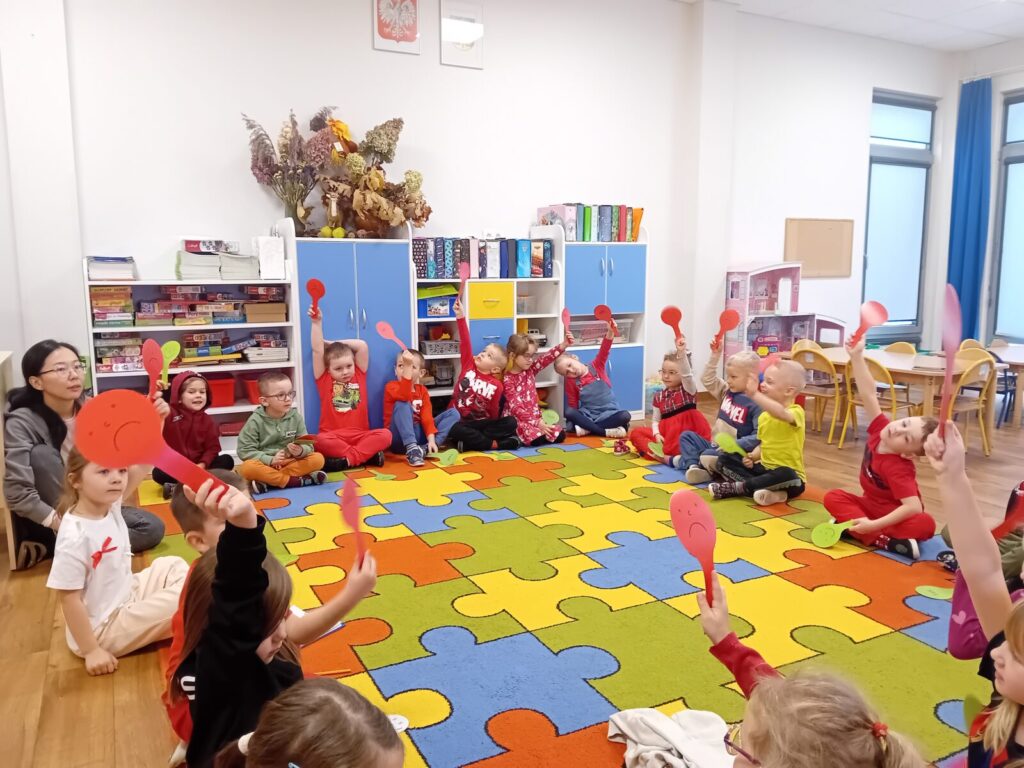 Galeria zdjęć przedstawia dzieci biorące udział w obchodach ogólnopolskiej kampanii, której celem było uwrażliwienie najmłodszych na problem przemocy i promowania bezpiecznego dzieciństwa.
