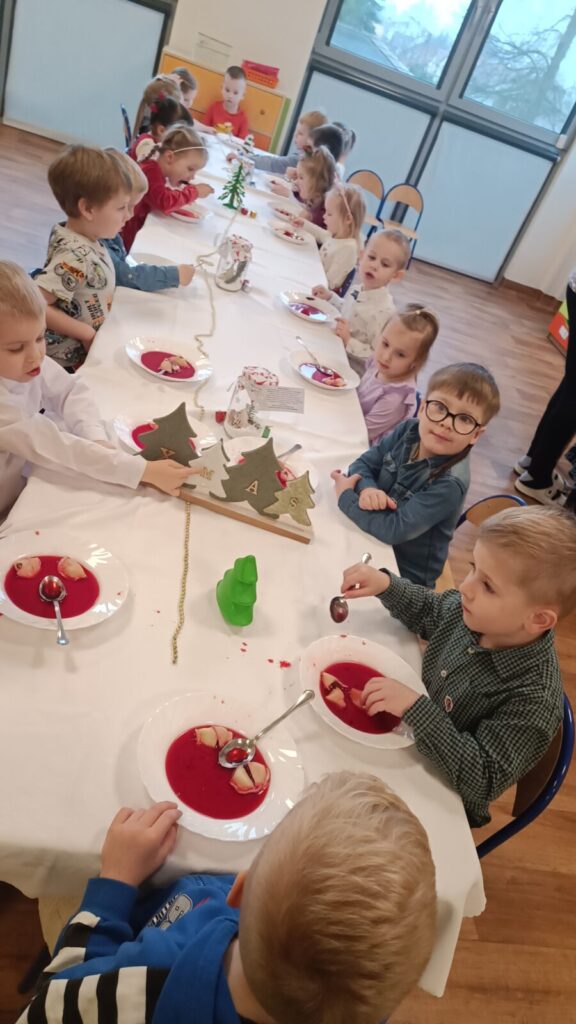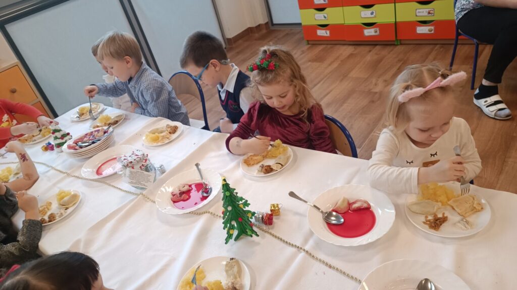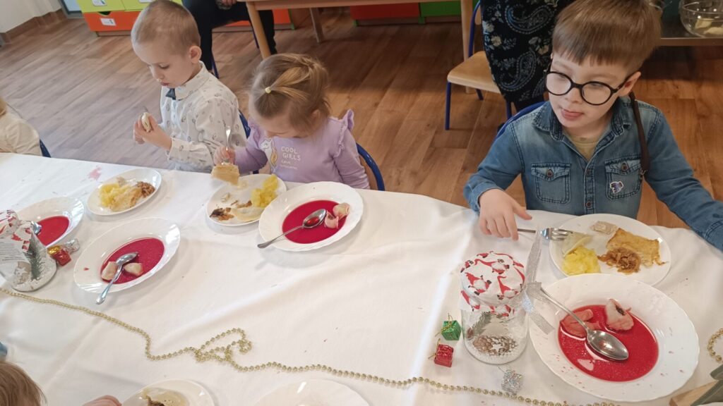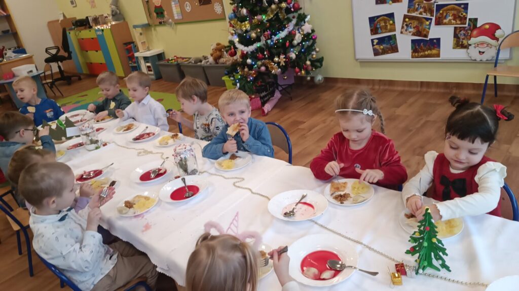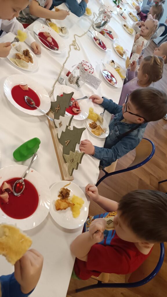 Dzisiaj odbył się uroczysty obiad Wigilijny, mieliśmy okazję podzielić się opłatkiem, pośpiewać kolędy i spróbować potraw wigilijnych.