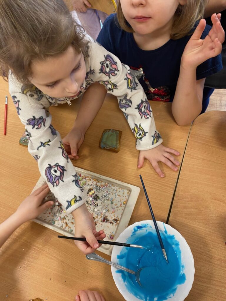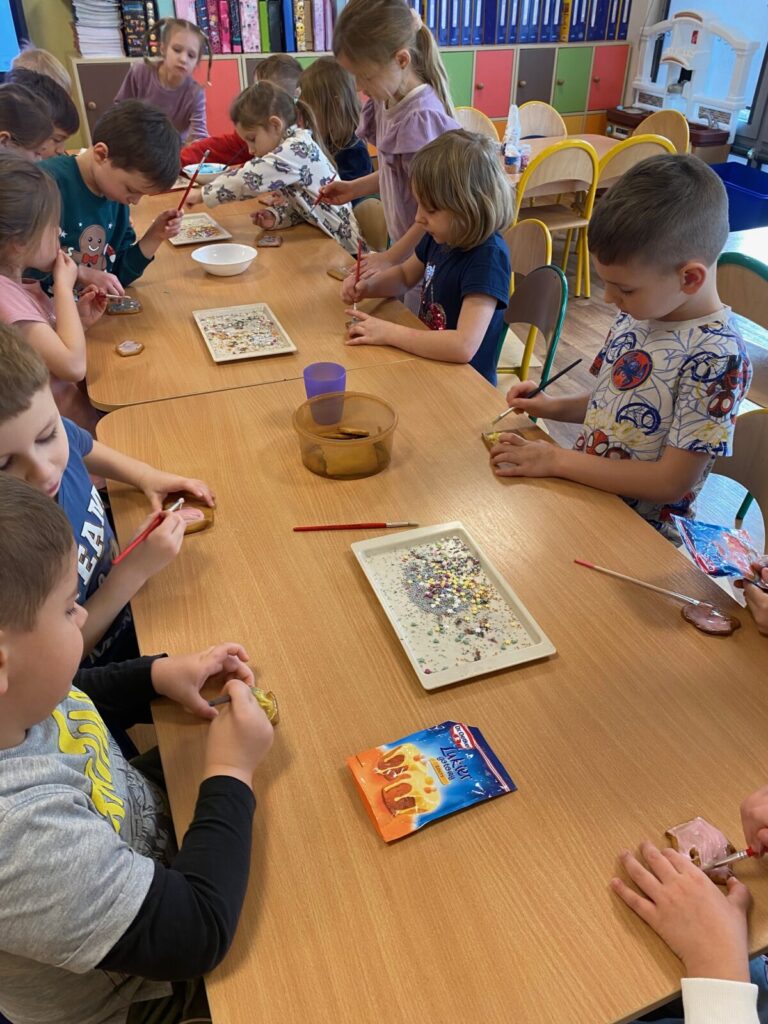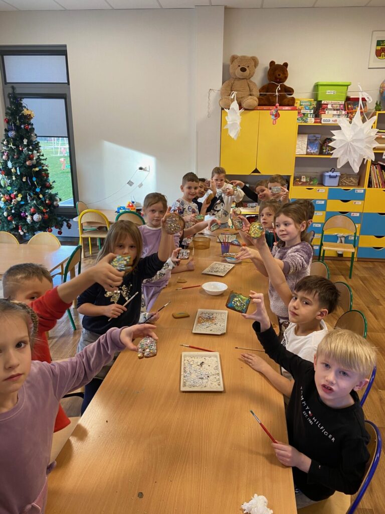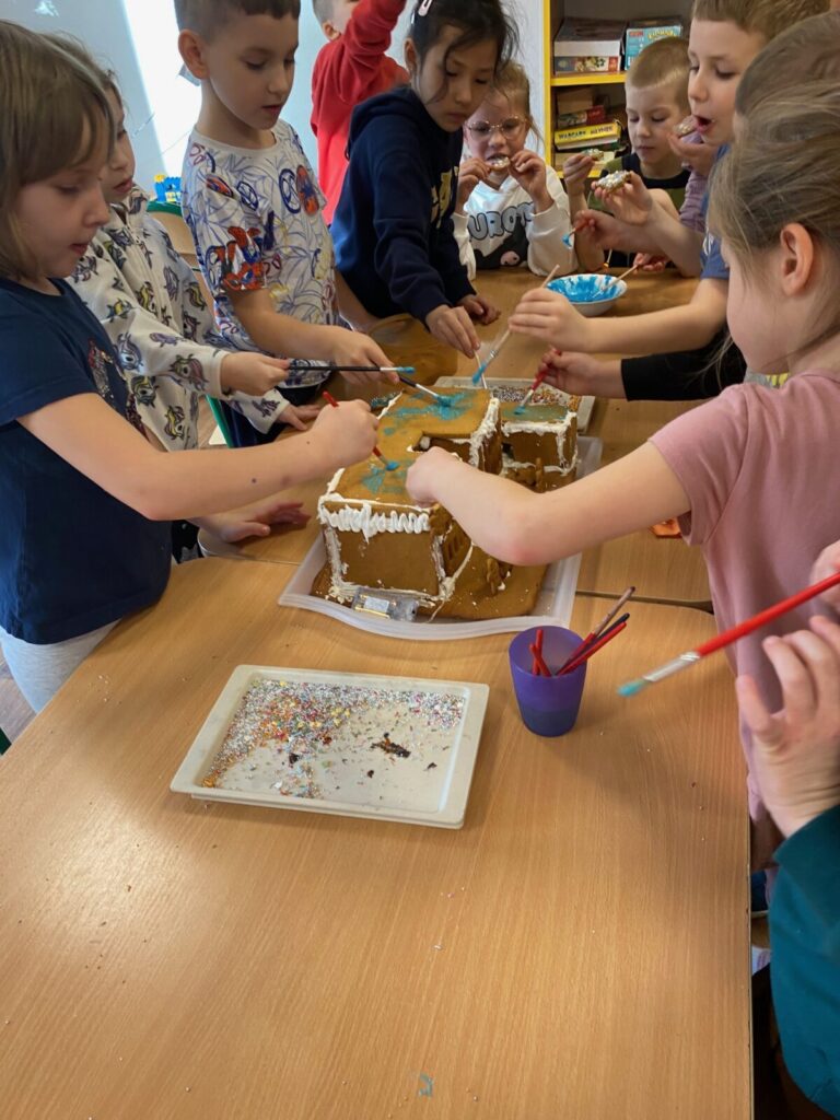 Wspólne piernikowanie 28 grudnia 2025 przez przedszkole Zdjęcia przedstawiają dzieci podczas dekorowania pierniczków