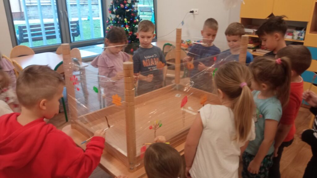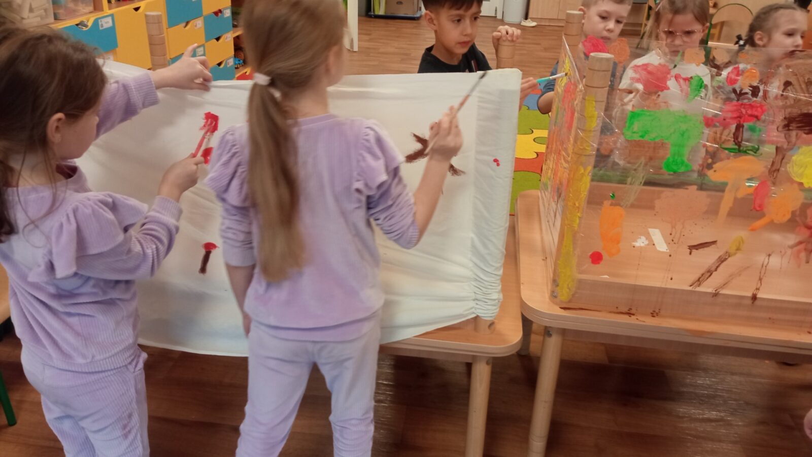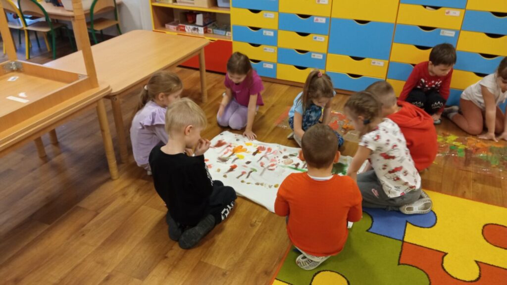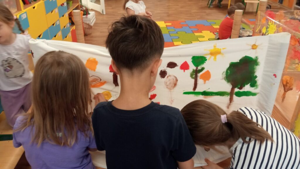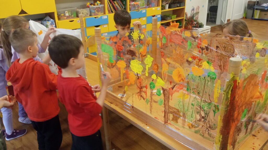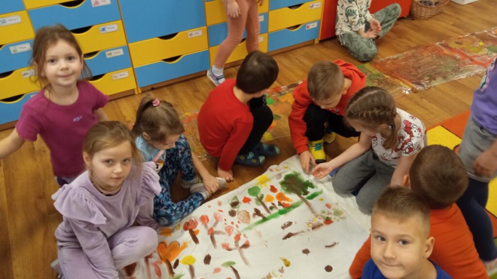 Galera zdjęć przedstawia przedszkolaki podczas malowania obrazów.