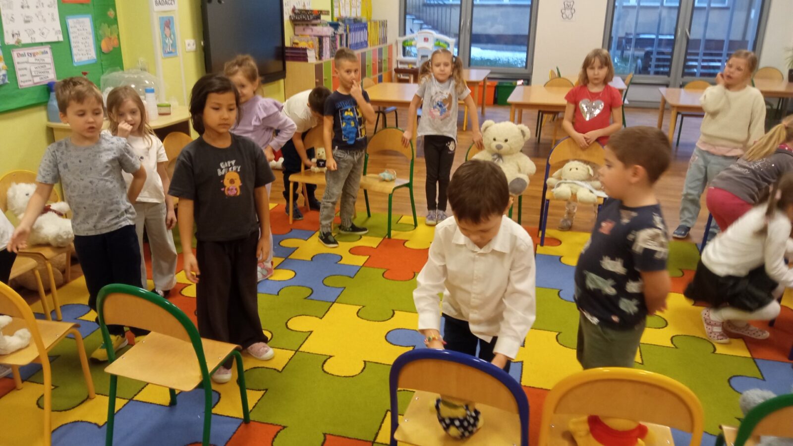 „Zabawy z misiem”- utrwalenie pojęć określających położenie przedmiotów w przestrzeni 30 grudnia 2025 przez przedszkole Galeria zdjęć przedstawia dzieci podczas wspólnej zabawy.