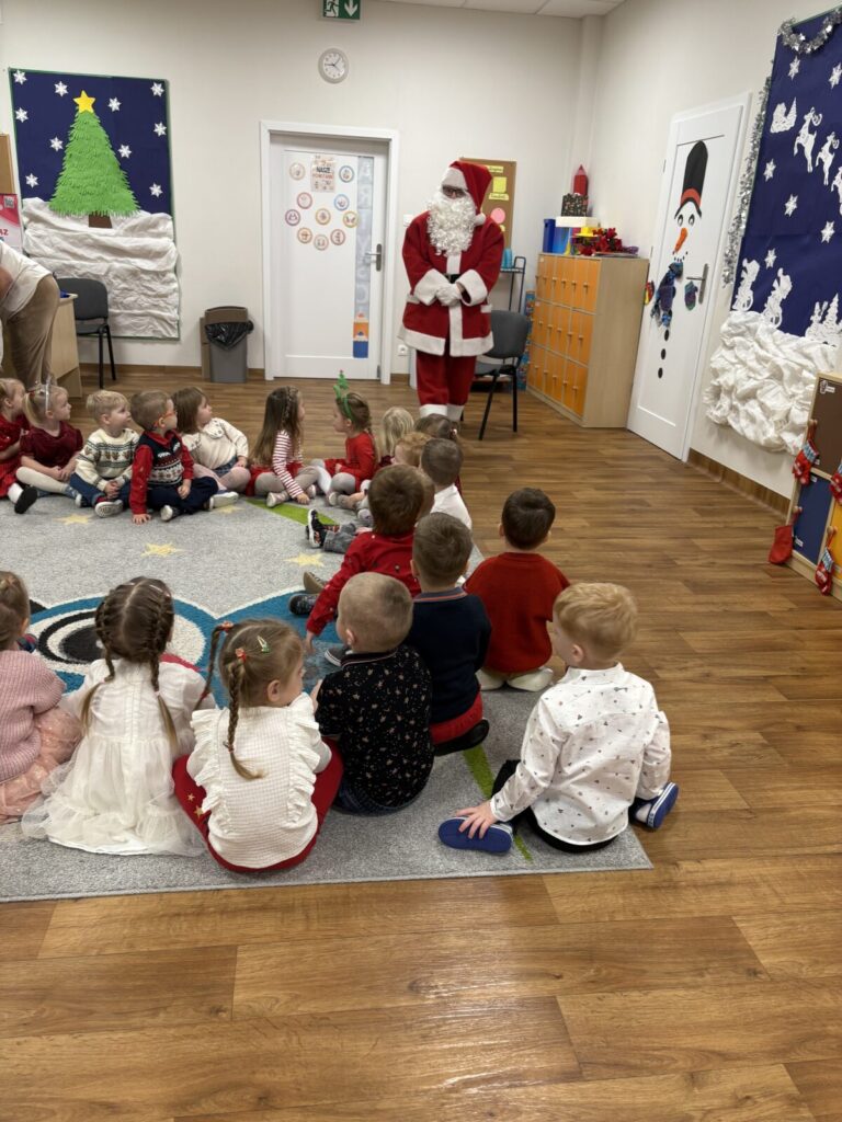 Wizyta Mikołaja 1 9 stycznia 2026 przez przedszkole Zdjęcia przedstawiają dzieci podczas wizyty Mikołaja. Dzień ten przyniósł dzieciom ogrom radości i emocji.