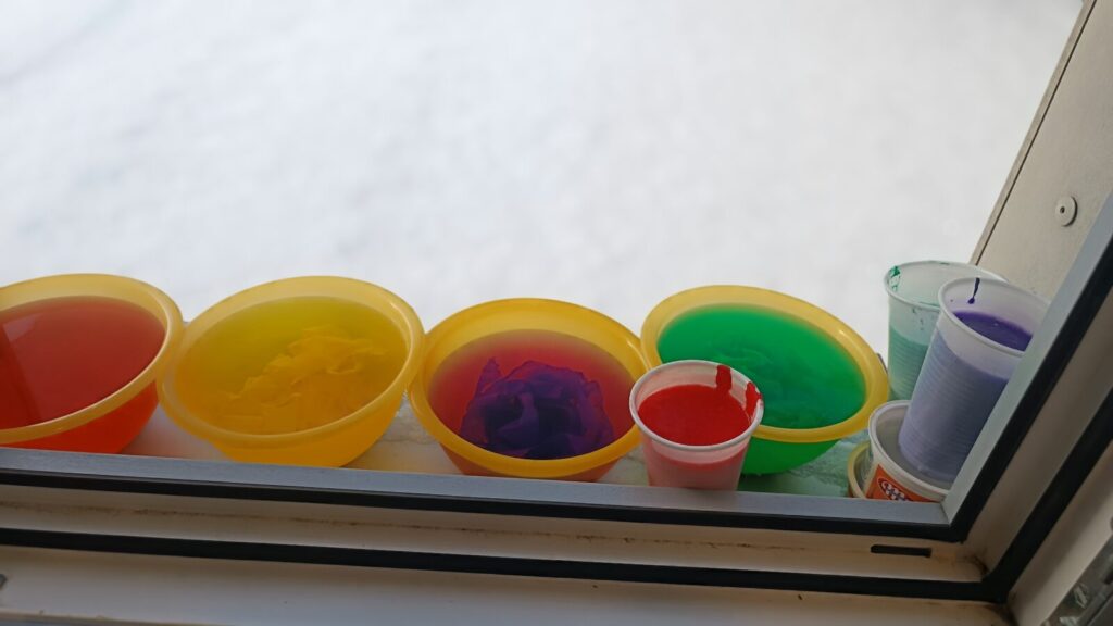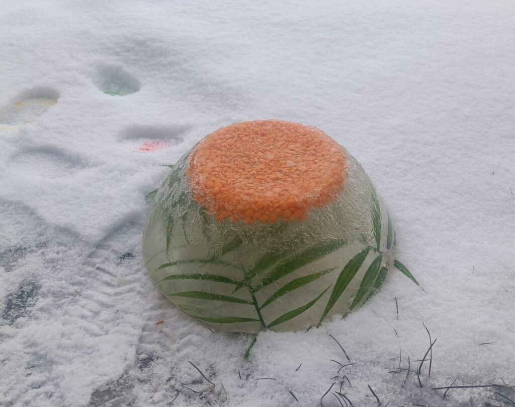 Eksperymentowaliśmy również z wodą, która pomógł zamrozić mróz na zewnątrz.