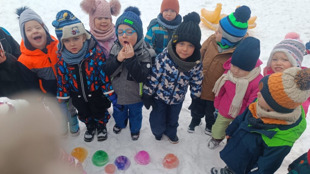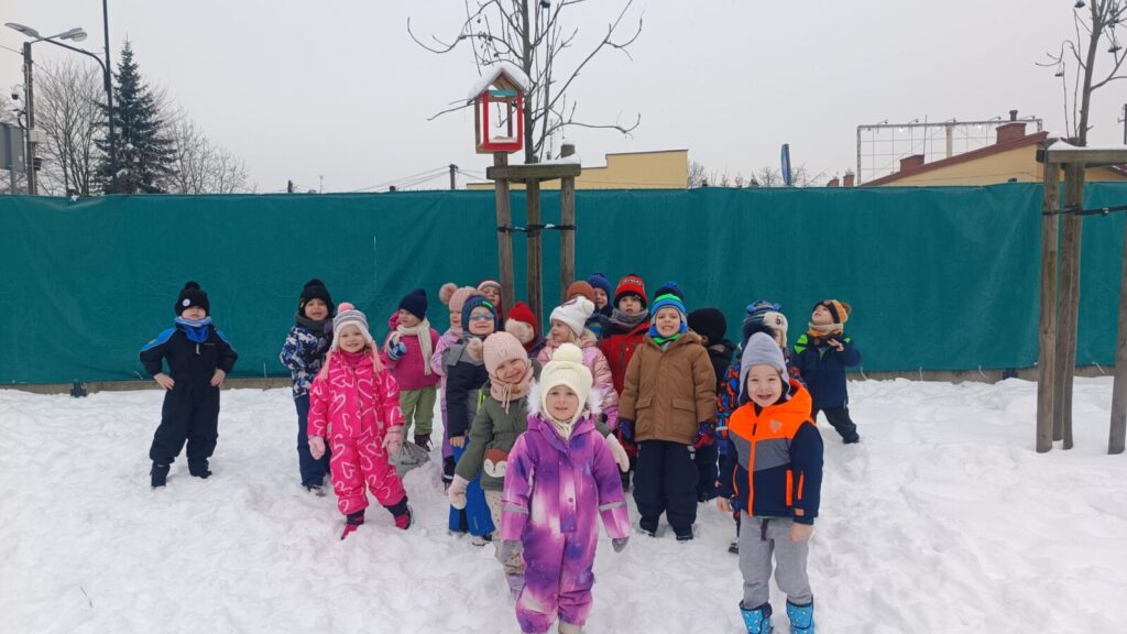 Omawiając temat dokarmiania zwierząt zimą, postanowiliśmy dokarmiać ptaszki na terenie naszego przedszkola. Dzieci z ciekawością obserwowały jakie ptaki przylatują do ziarenek.
