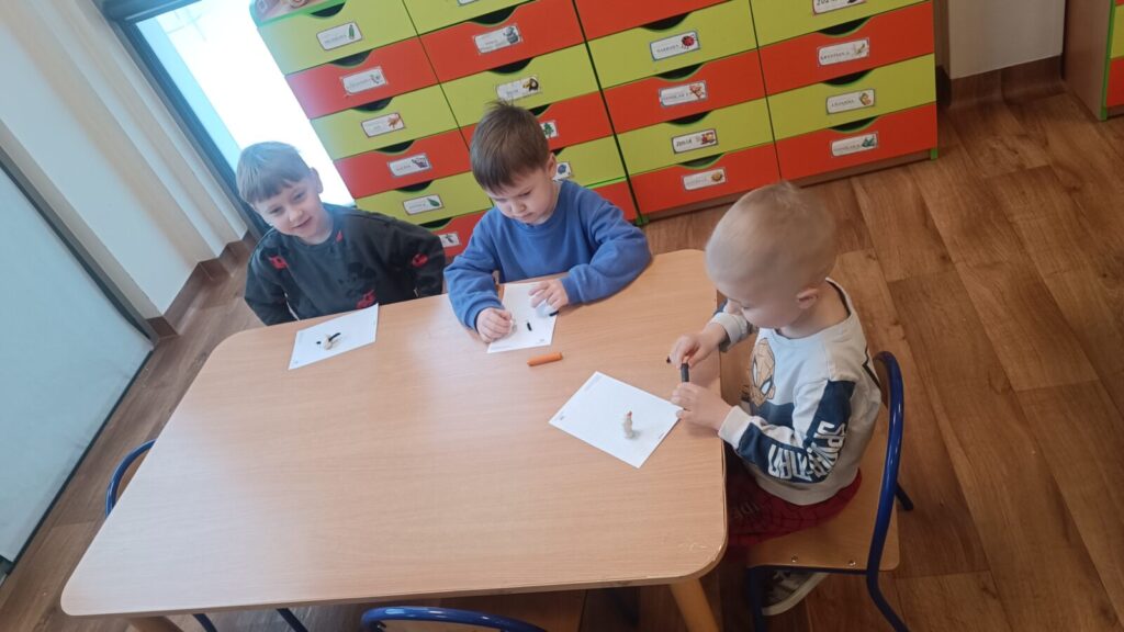 Następnie dzieci tworzyły swoje bałwanki z plasteliny.