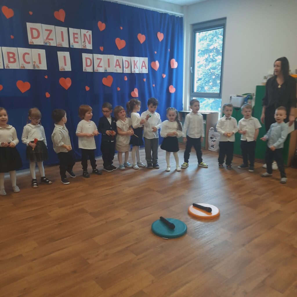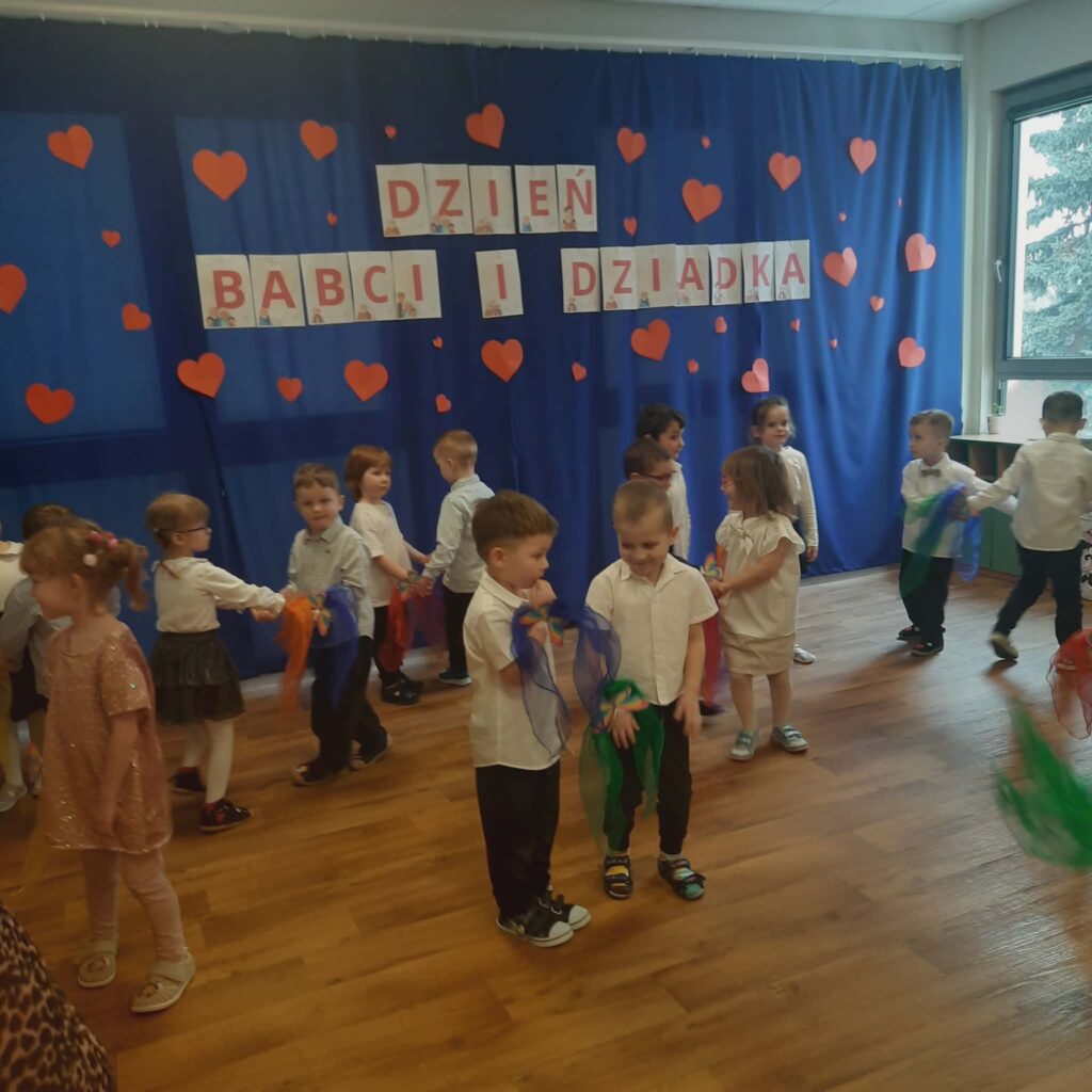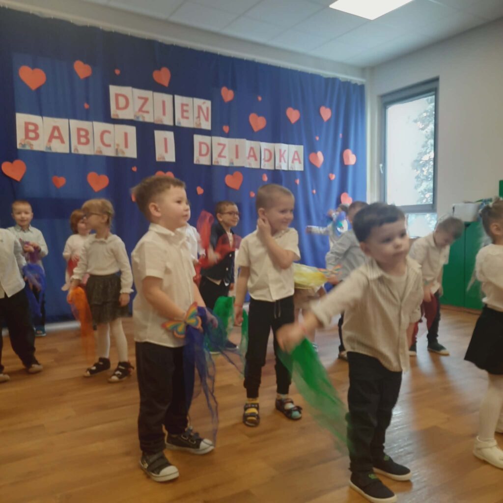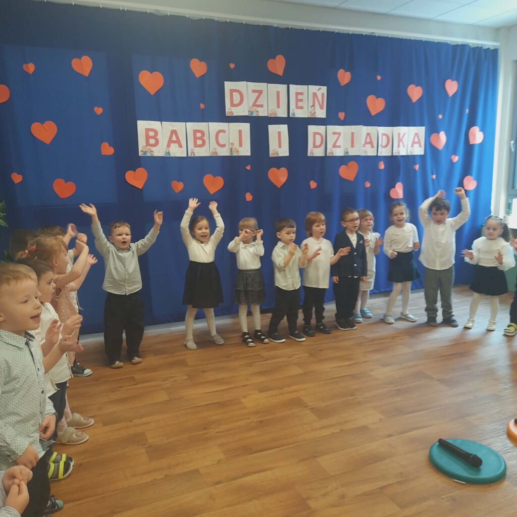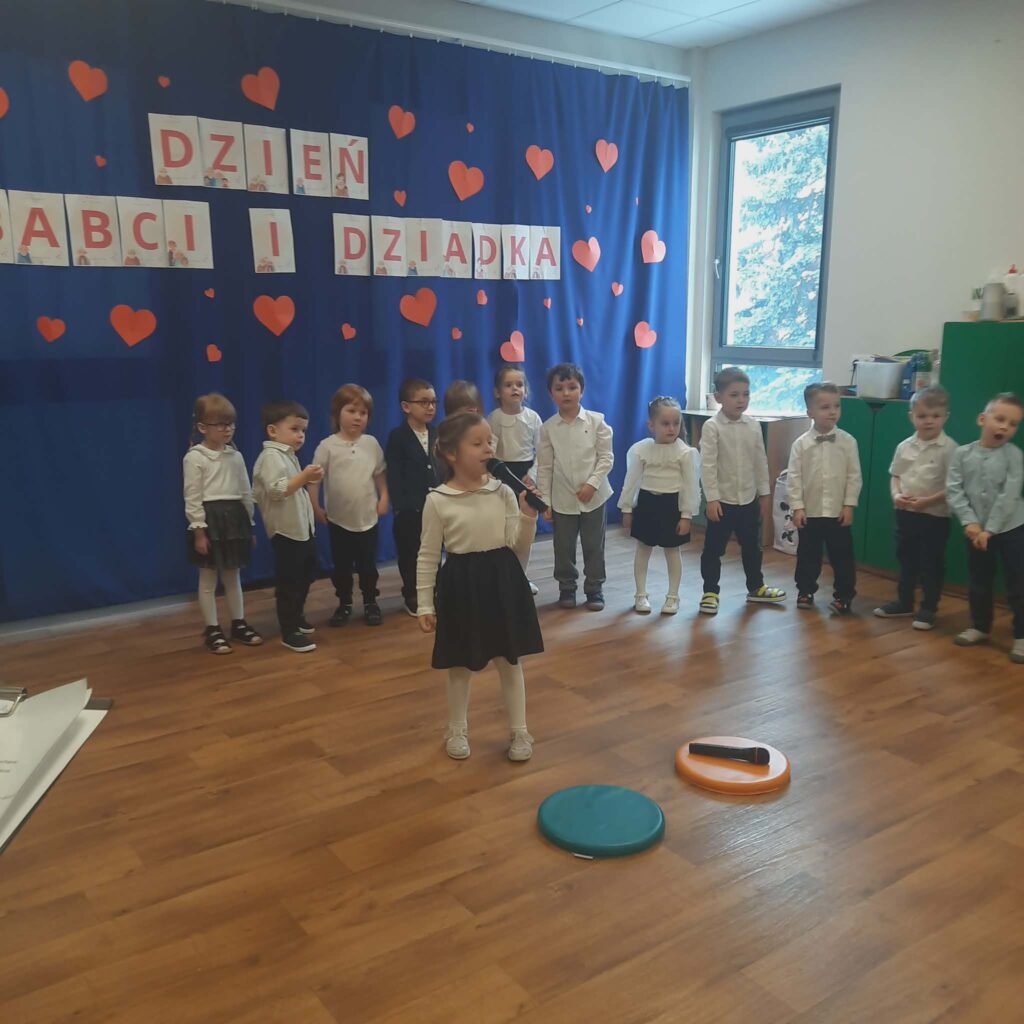 Dzień Babci i Dziadka 11 lutego 2026 przez przedszkole Galeria zdjęć przedstawia dzieci podczas przedstawienia z okazji Dnia Babci i Dziadka.