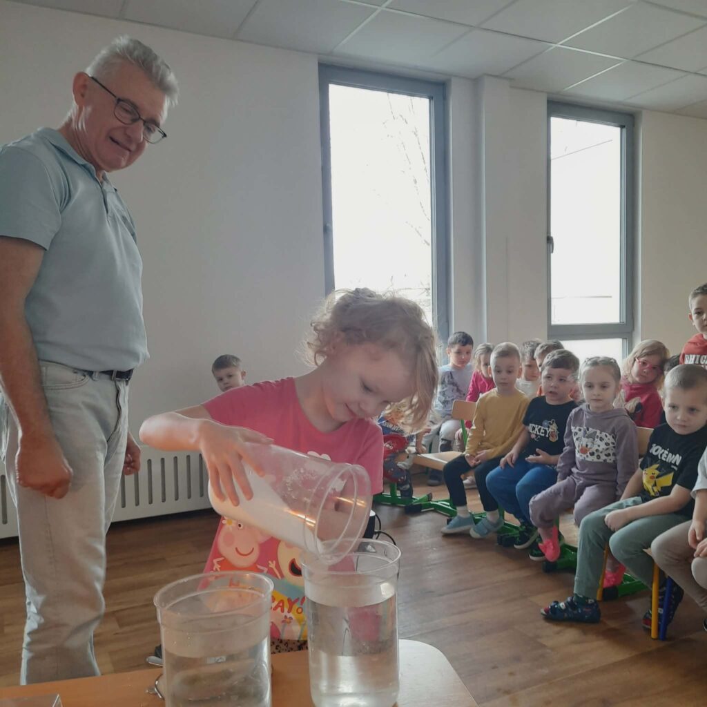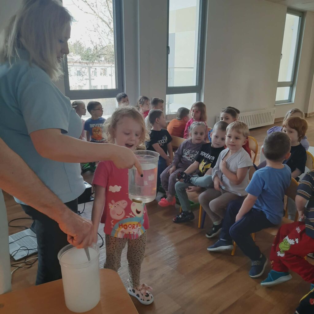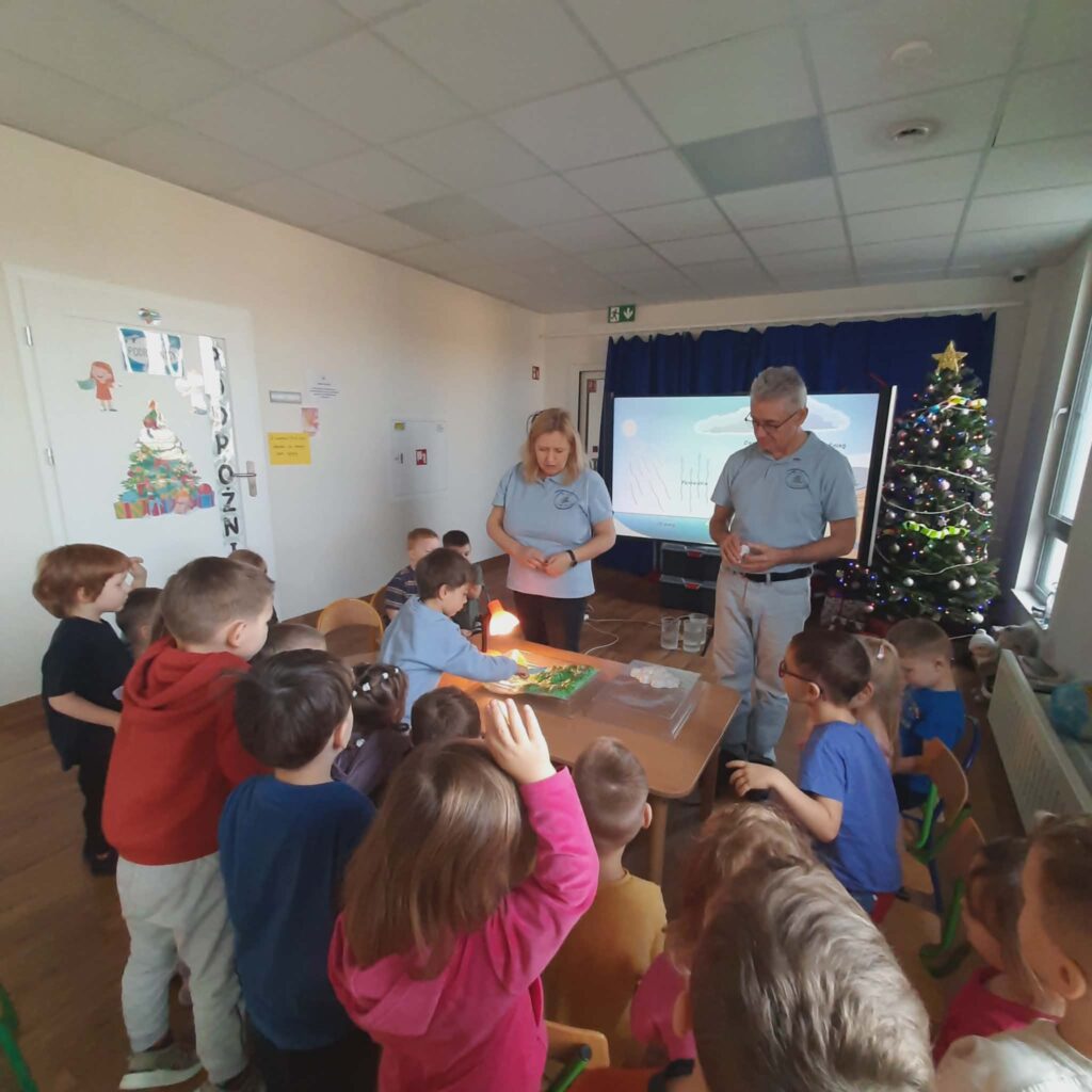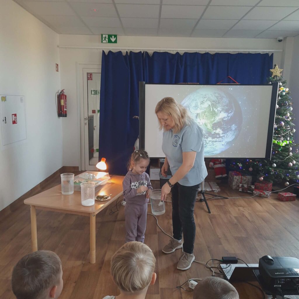 Warsztaty przyrodnicze z „Wesołym Uniwersytetem” 11 lutego 2026 przez przedszkole Galeria zdjęć przedstawia dzieci podczas warsztatów.