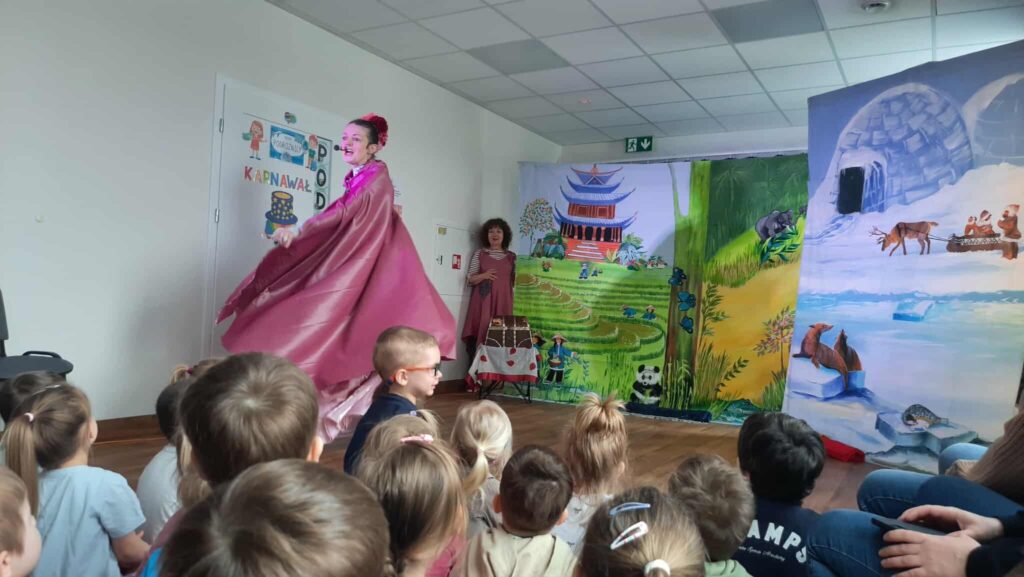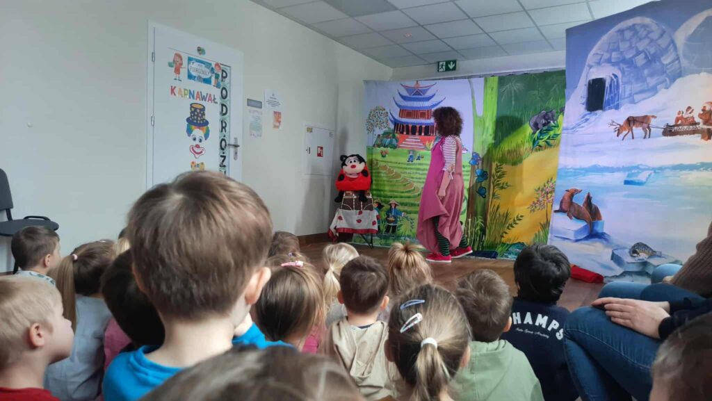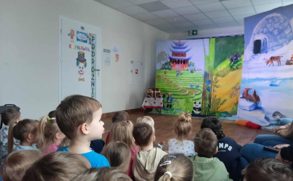 „Niezwykła podróż”-teatrzyk 16 lutego 2026 przez przedszkole Dzieci wzięły udział w teatrzyku „Niezwykła podróż”
