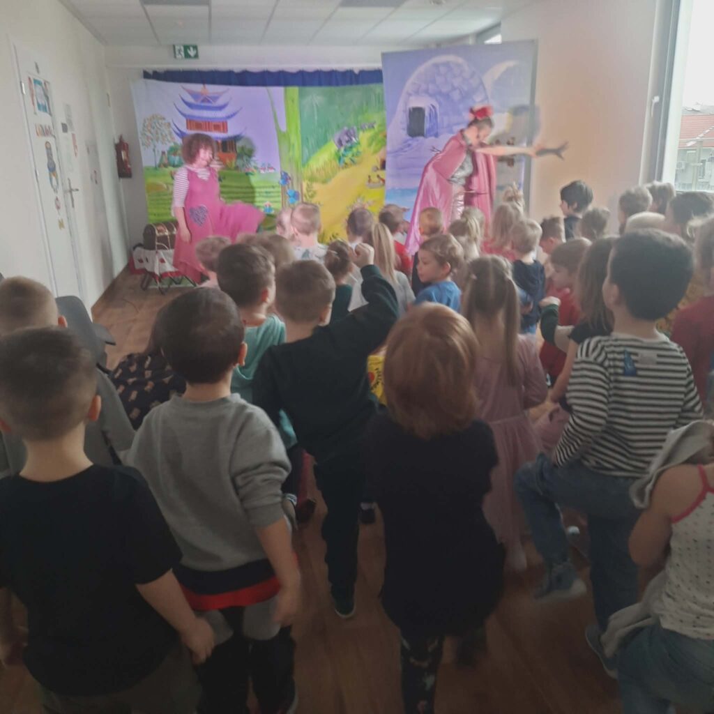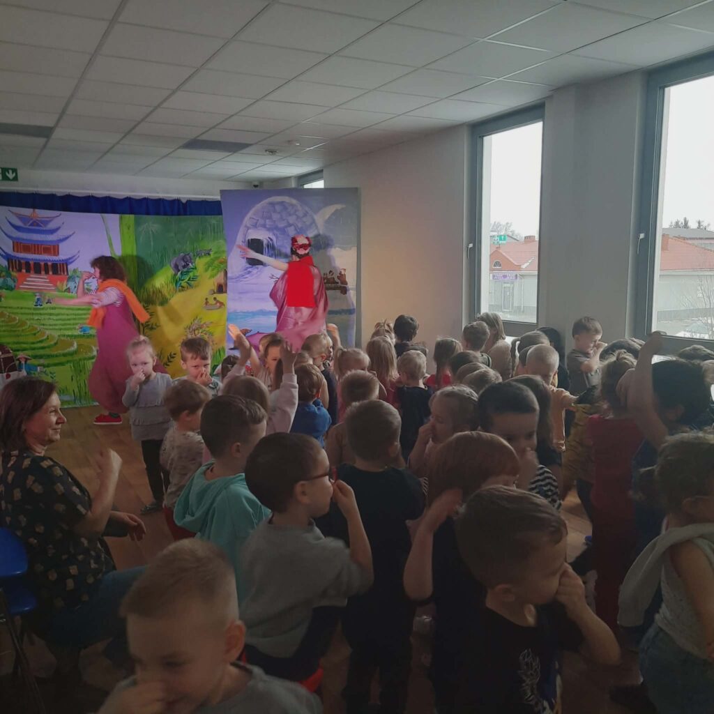 „Niezwykła podróż”-teatrzyk 17 lutego 2026 przez przedszkole Galeria zdjęć przedstawia dzieci podczas teatrzyku.