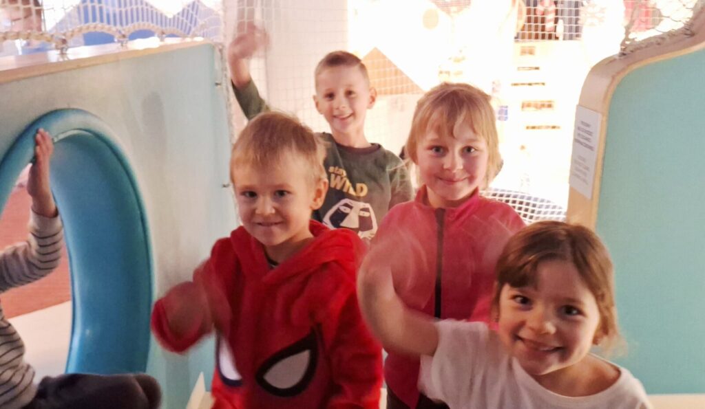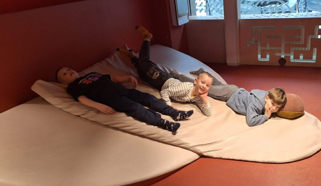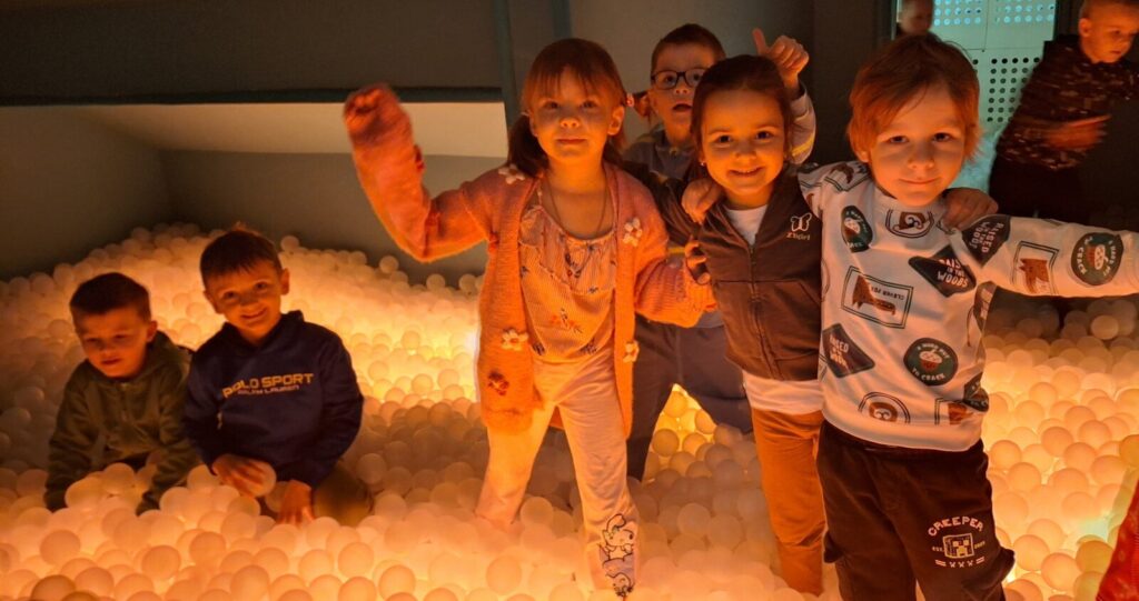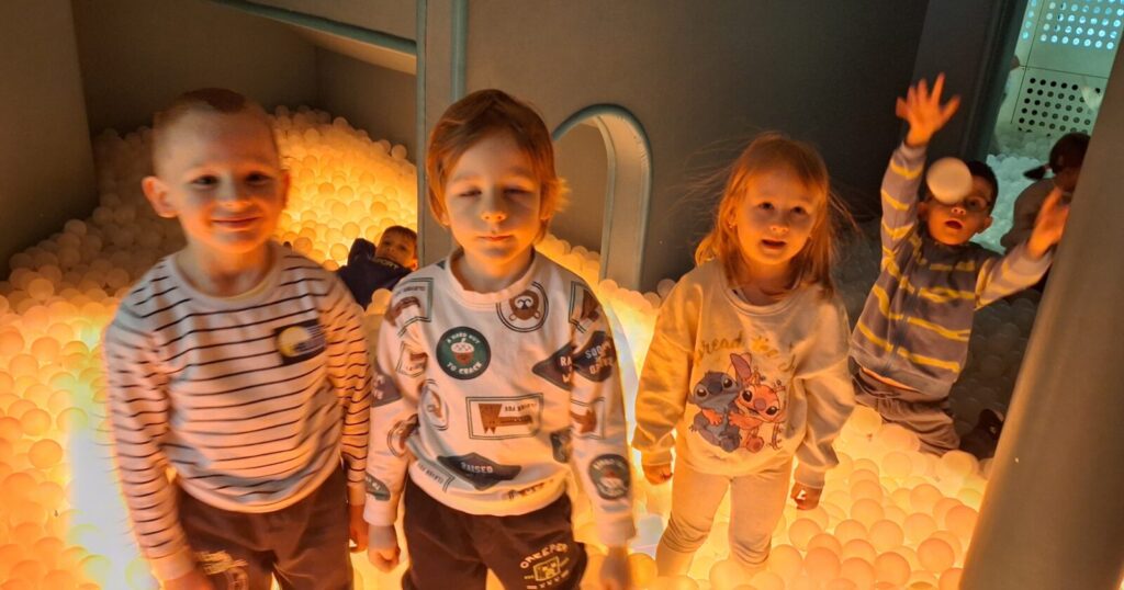 Galeria zdjęć przedstawia dzieci podczas zabaw i zajęć edukacyjnych w sali ,,Sensorysie” w Warszawie. ,,Sensorysie” to przestrzenna sala zabaw stworzona o dzieciach i ich rozwoju, skomponowana z nowoczesnymi technologiami, zachęcała do aktywności zmysłowych. W tym nowoczesnym miejscu przedszkolaki miały możliwość rozwijania swoich umiejętności sensorycznych, nauki i zabawy. To była świetna zabawa dla wszystkich.