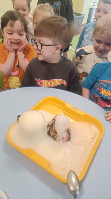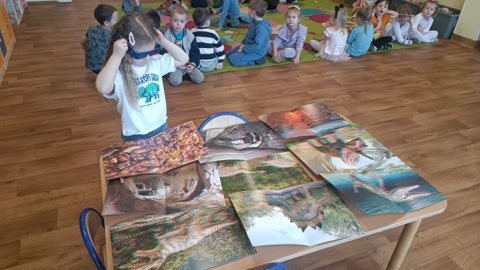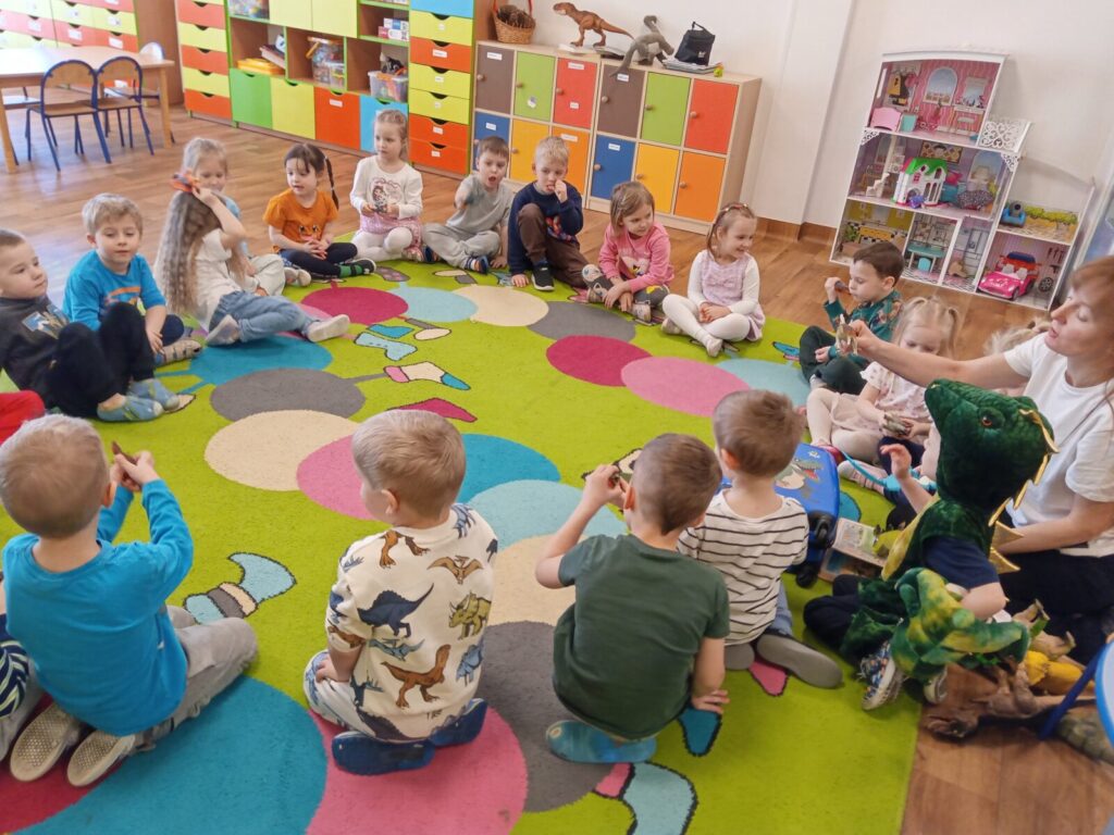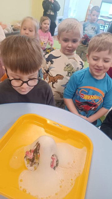 26 lutego obchodziliśmy „Dzień Dinozaura”. Wspólnie wykonaliśmy eksperyment „Wulkan”. Poznaliśmy różne rodzaje dinozaurów i oglądaliśmy ich zdjęcia w 3D. Po południu Patryk i jego mama opowiedzieli nam o hobby Patryka, którym są właśnie dinozaury