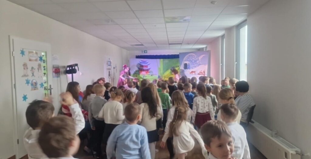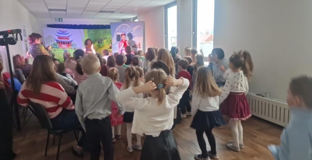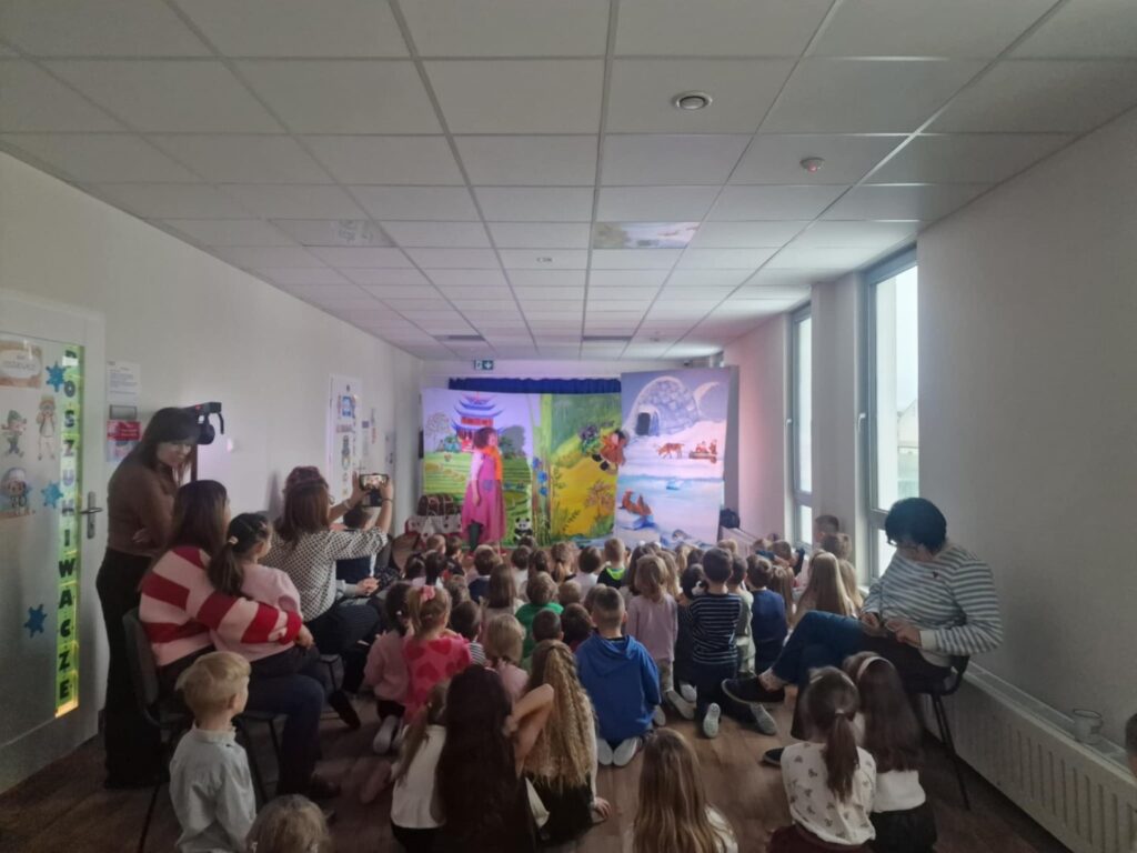 „Niezwykła podróż”-teatrzyk 26 lutego 2026 przez przedszkole Galeria zdjęć przedstawia dzieci podczas oglądania teatrzyku.