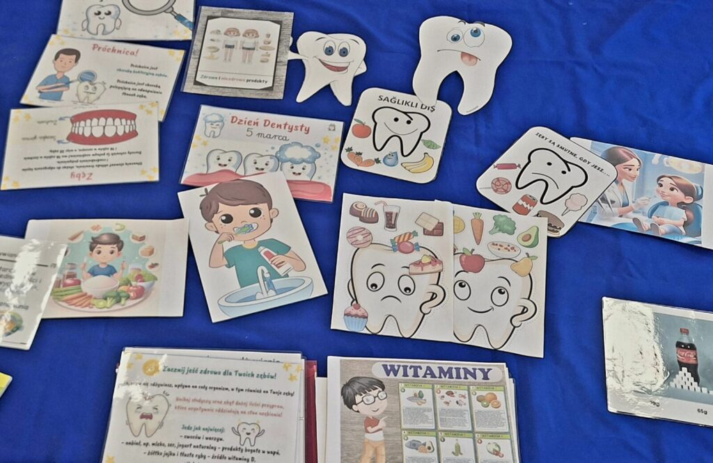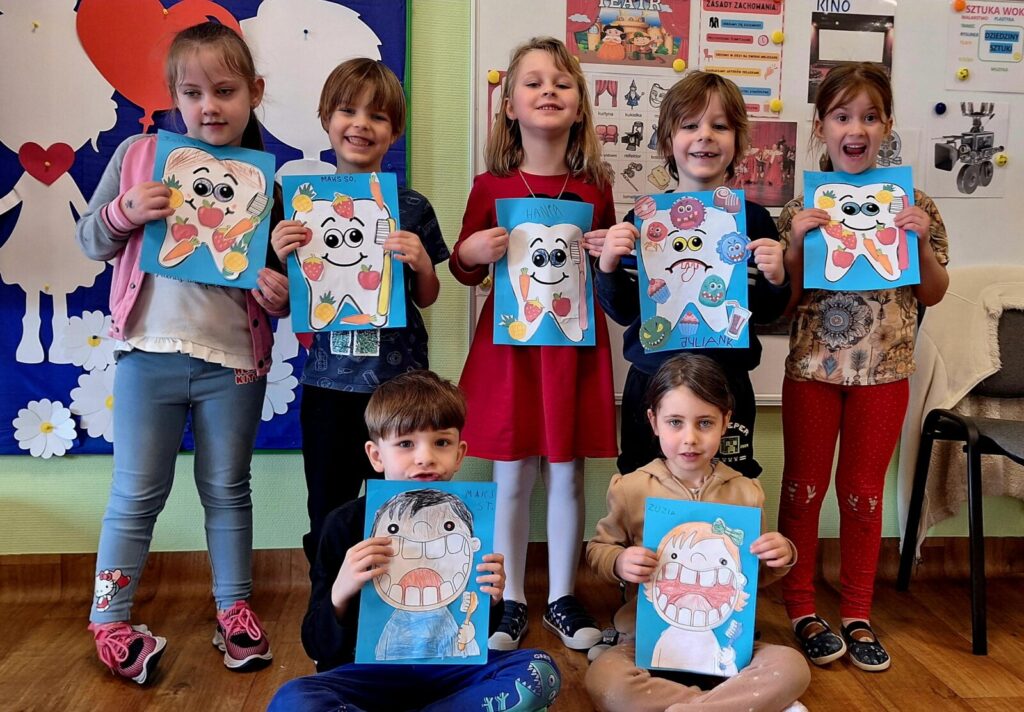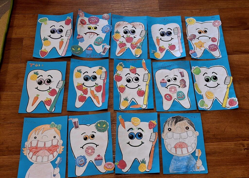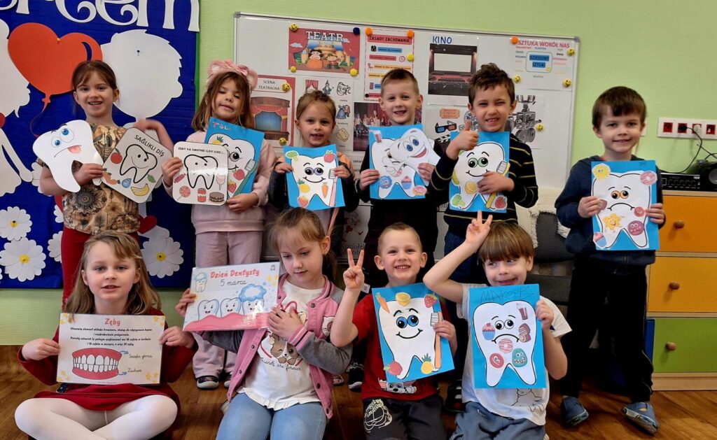 Galeria zdjęć przedstawia dzieci obchodzące w przedszkolu ,,Dzień Dentysty”. Przedszkolaki miały okazję zapoznać się z zawodem dentysty oraz dowiedziały się, jak dbać o higienę jamy ustnej, aby zęby były zdrowe.