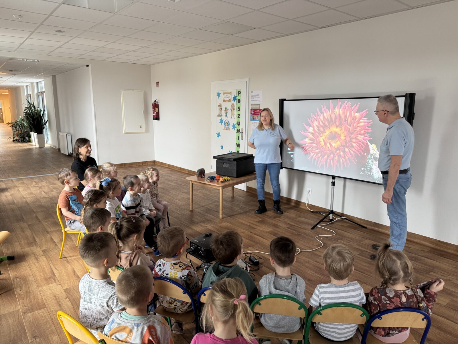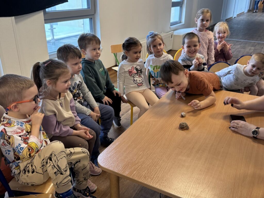 WESOŁY UNIWERSYTET – symbioza 13 marca 2026 przez przedszkole Galeria zdjęć przedstawia dzieci podczas warsztatów przyrodniczych.